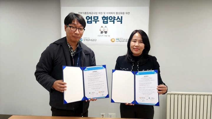 내용: 기부식품등 제공사업(푸드뱅크, 이동푸드마켓) 연계 및 지원을 위한 업무협약을 체결했습니다.