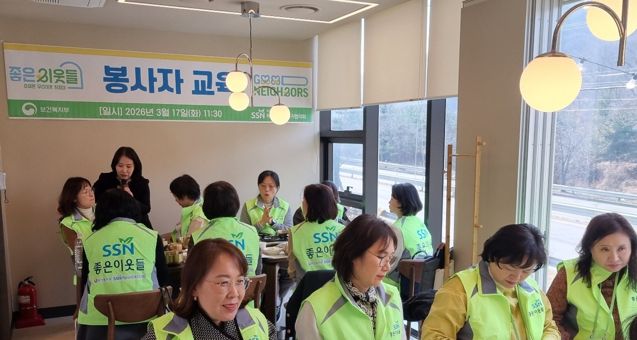 일 시: 2026년 3월 17일 (화) 장 소: 하남등심 참석자: 32명 내 용: 복지소외계층 발굴 및 민간자원 연계ㆍ지원 사업인 좋은이웃들 2026년 2차 봉사자 기초교육을 진행하였습니다. |