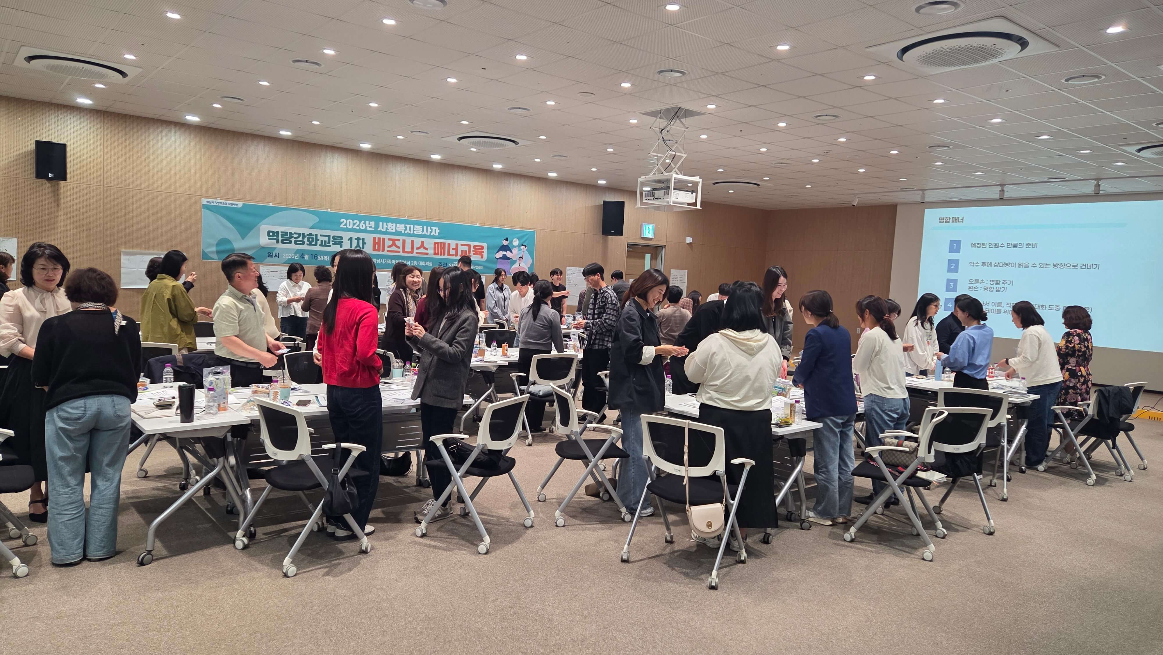 일시: 2026년 4월 16일 (목) 14:00~18:00 장소: 하남시가족어울림센터 2층 대회의실 참석자: 사회복지종사자 50명 교육명: 비즈니스 매너교육 내용: 사회복지현장에서 필요한 '비즈니스 매너'에 대해 역량강화교육을 진행했습니다. |