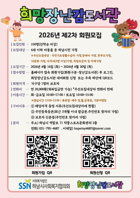 | 2026년 희망장난감도서관 제2차 대여회원 모집 안내 | |||||