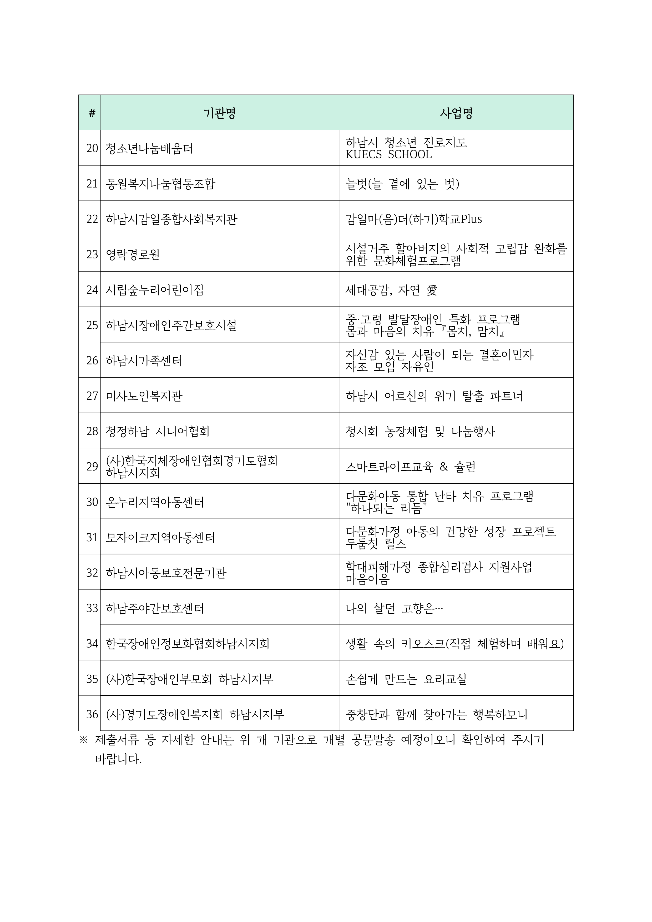 | 2025년 하남도시공사 사회공헌 공모사업 선정기관 알림 | |||||