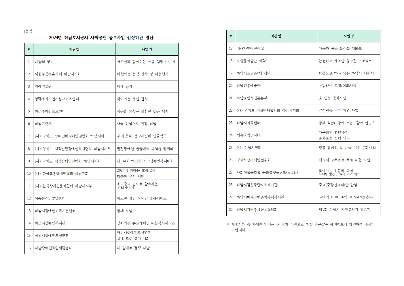 | 2024년 하남도시공사 사회공헌 공모사업 선정기관 알림 및 후원처 로고파일 | |||||