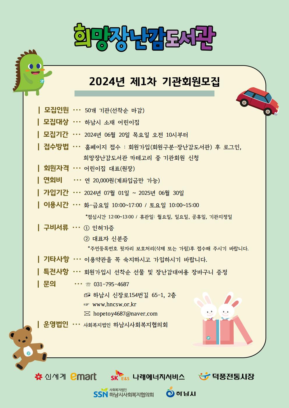| 희망장난감도서관 2024년 제1차 기관회원모집 | |||||