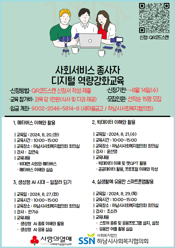 사회복지공동모금회 지원사업 <사회서비스종사자 디지털역량강화교육> 8월 교육 안내