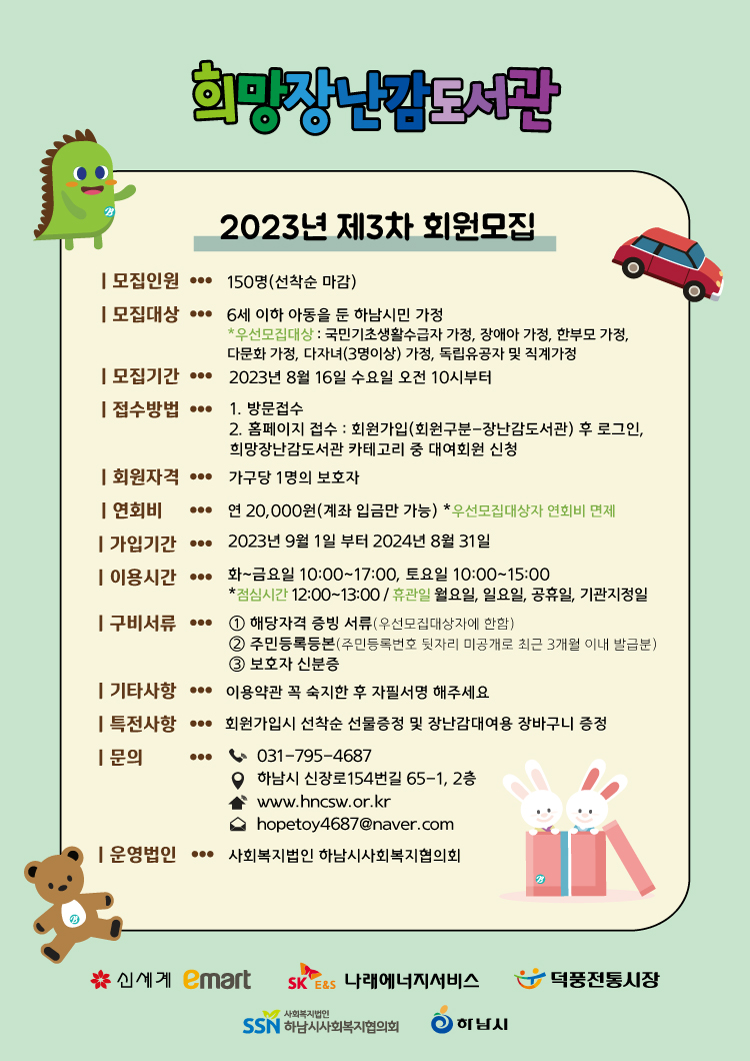 | 희망장난감도서관 2023년 제3차 회원모집 안내 | |||||