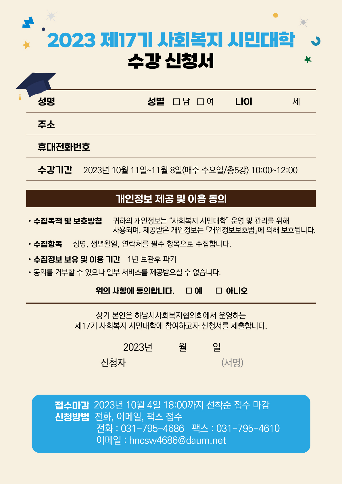 | 2023 제17기 사회복지 시민대학 수강생 모집 | |||||