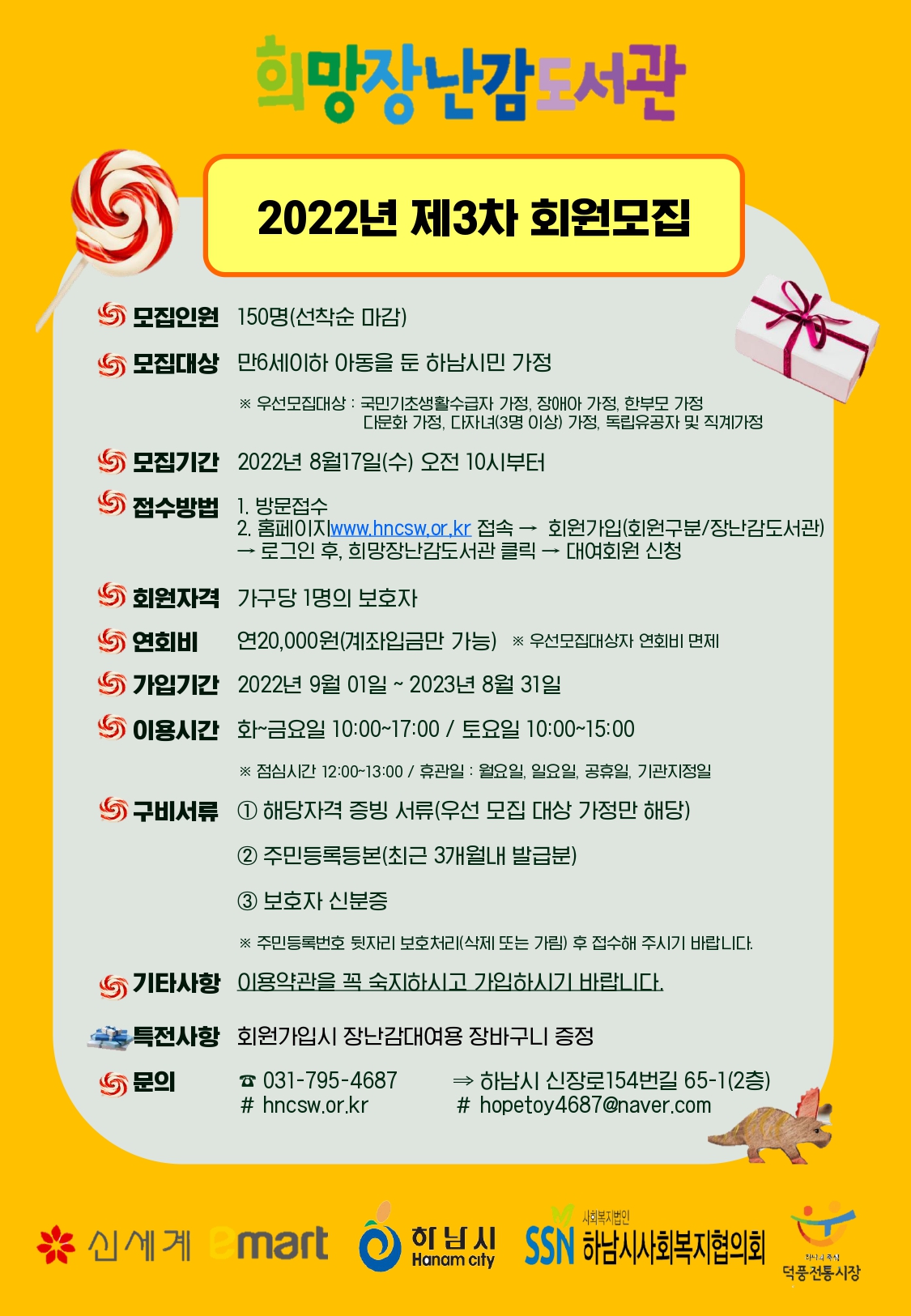 | 희망장난감도서관 2022년 제3차 회원모집 | |||||