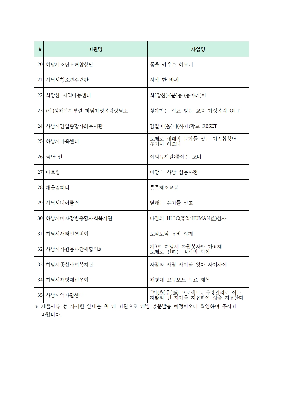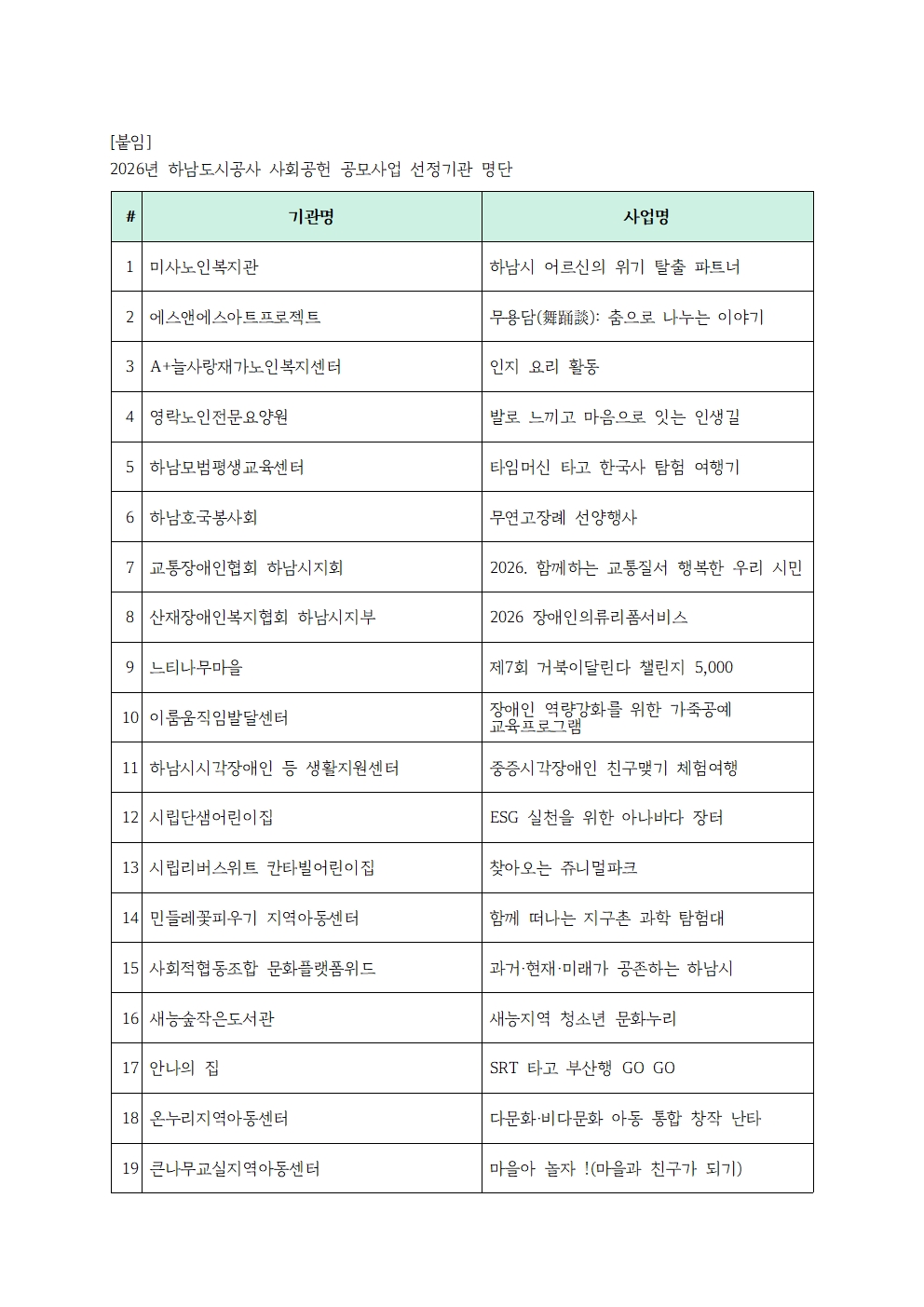 | 2026년 하남도시공사 사회공헌 공모사업 선정기관 알림 및 후원처 로고파일 | |||||