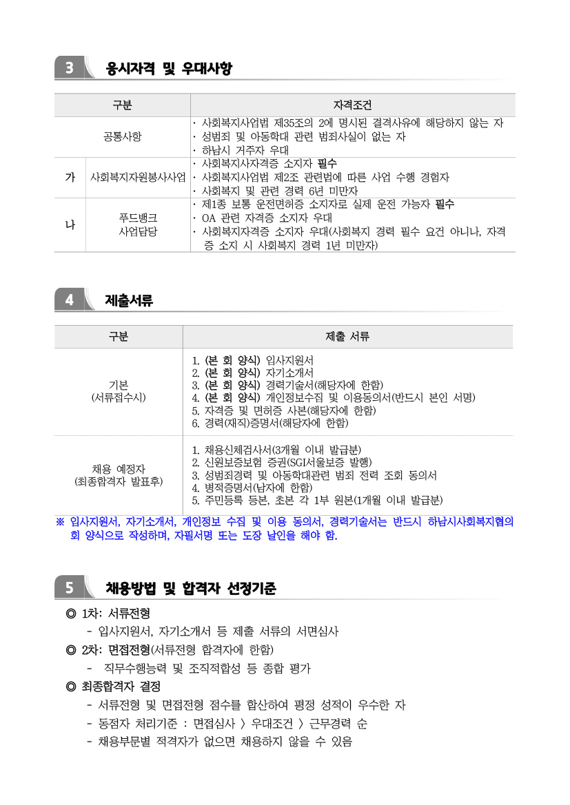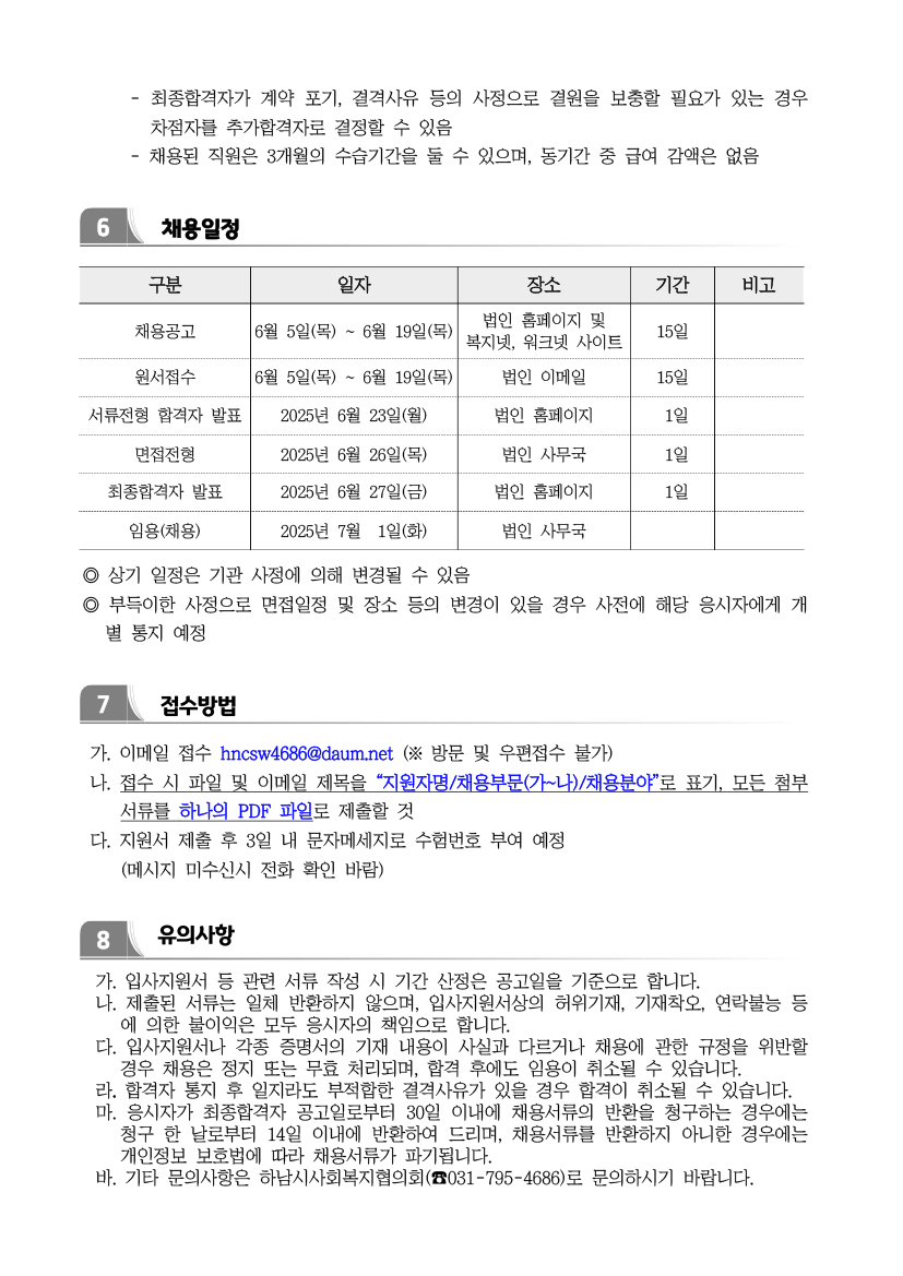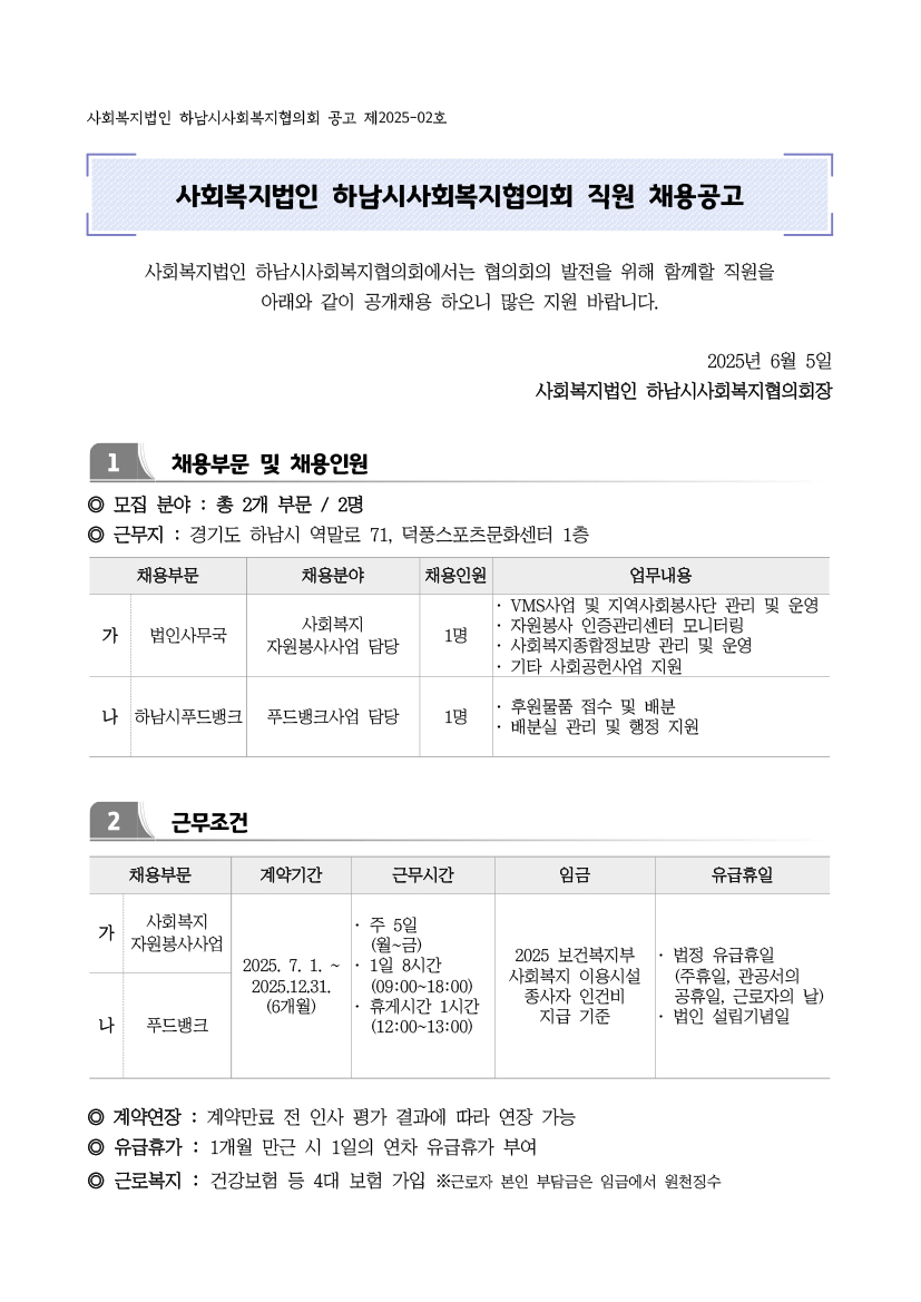 | 채용공고 제2025-02호 「사회복지법인 하남시사회복지협의회 직원 채용」 | |||||