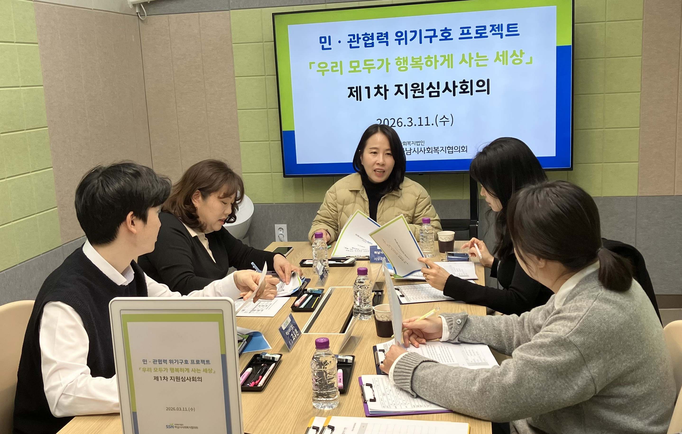 내 용: 민ㆍ관협력 위기구호 프로젝트 우리 모두가 행복하게 사는 세상(우행세) 2026년도 1차 지원심사회의를 진행하였습니다. 우리 모두가 행복하게 사는 세상은 복지사각지대 이웃을 발굴하여 대상자의 욕구에 맞게 다양한 지원하고 있습니다.