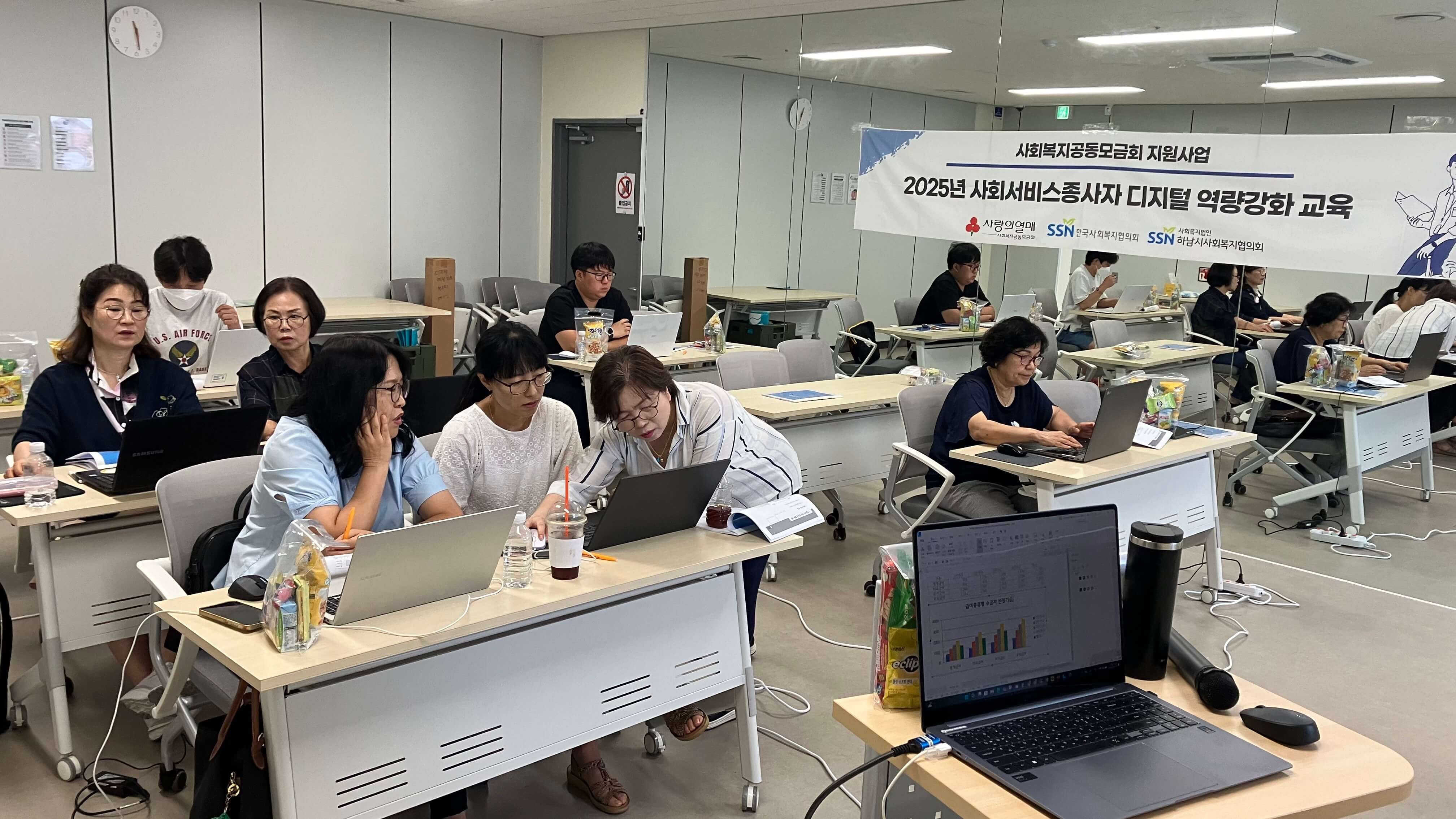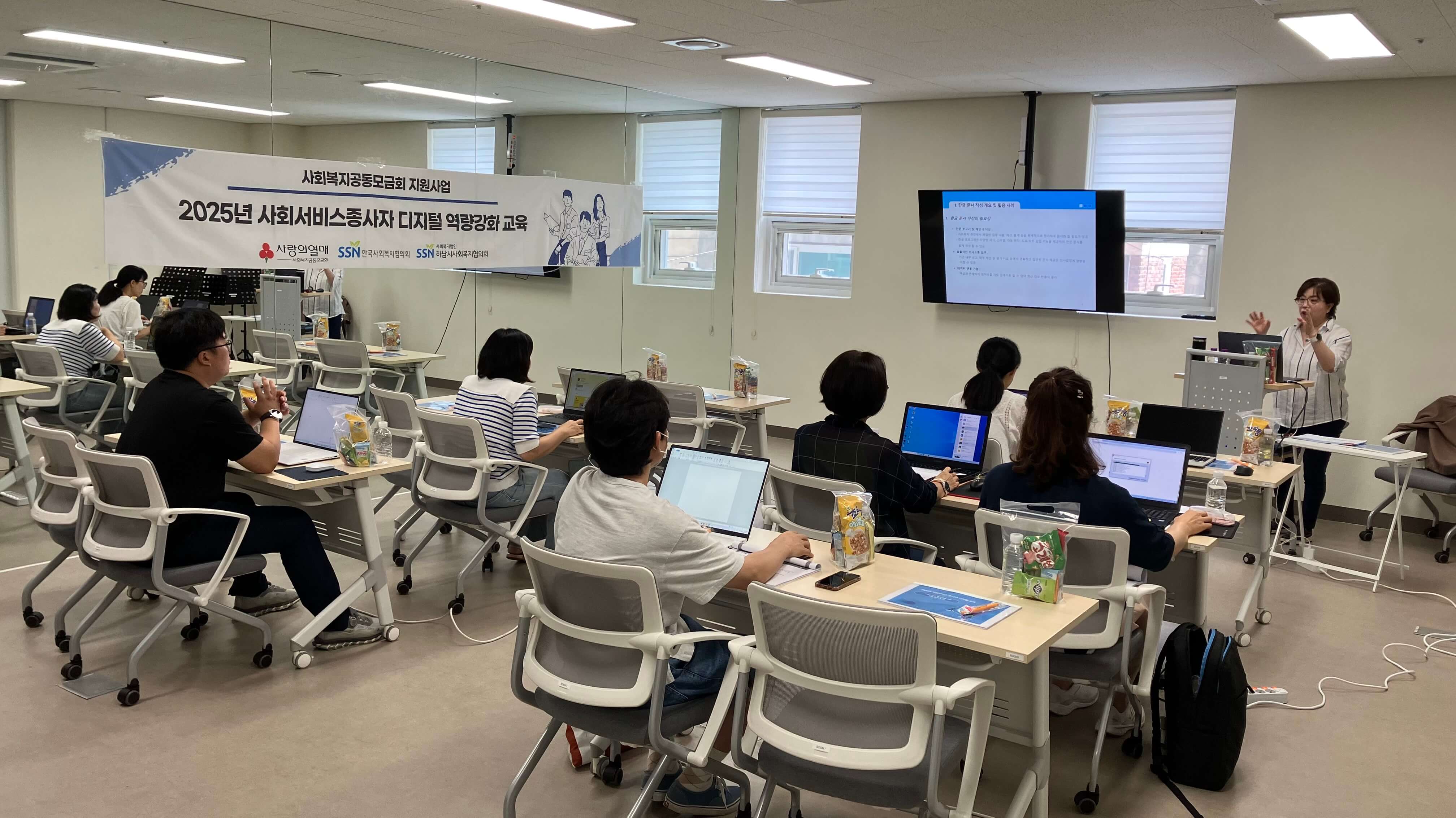 일 자: 2025년 8월 29일(금) 장 소: 덕풍스포츠문화센터 내 2층 교육실(Room1) 참석자: 8명 교육명: 사회복지 종사자를 위한 한글 실무(초급) 내 용: 사회복지공동모금회 지원사업인 2025년 사회서비스종사자 디지털 역량강화교육 19차를 8명의 사회복지 종사자들과 함께 진행하였습니다. |