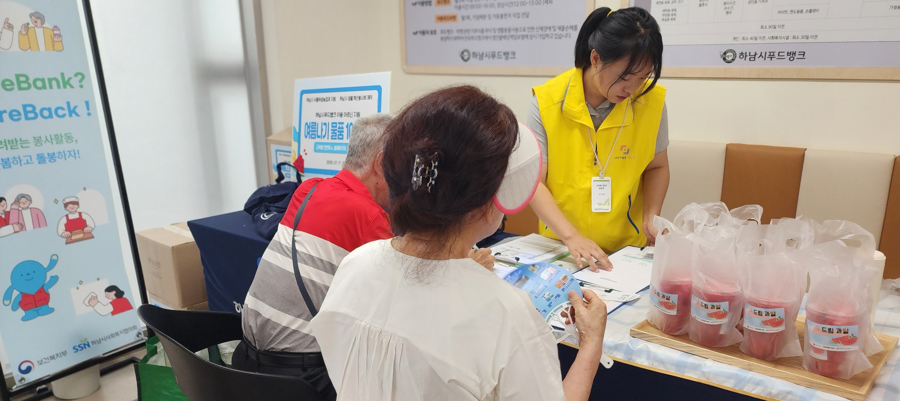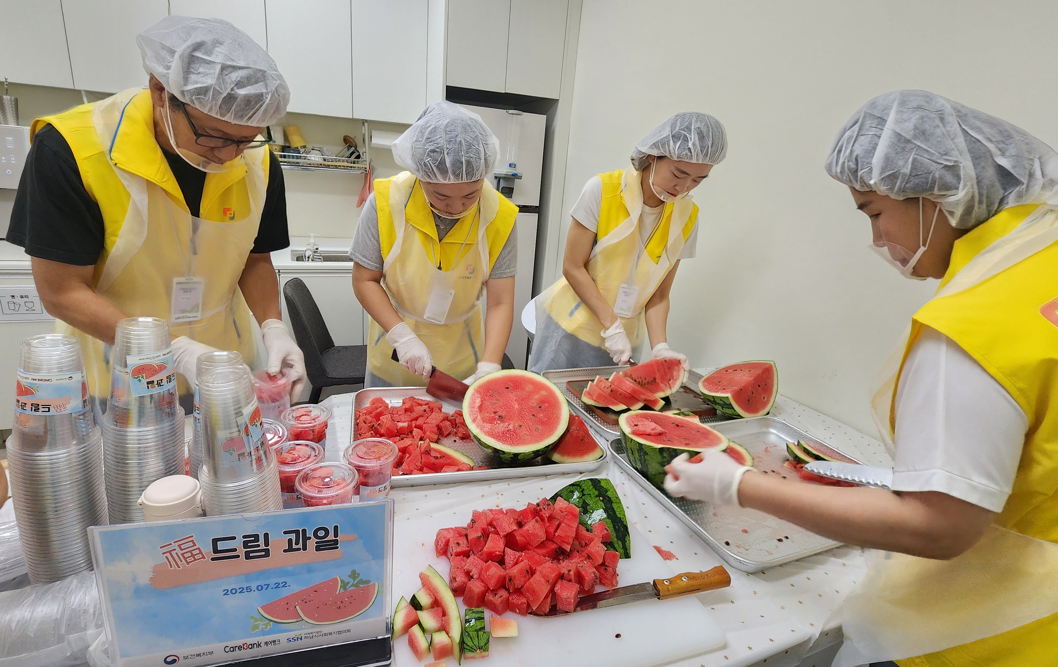 일 시: 2025년 7월 22일(화) 장 소: 하남시사회복지협의회 부설 푸드뱅크 참석자: 케어뱅크 돌봄봉사자, 돌봄대상자 내 용: 돌봄봉사자들이 수박으로 직접 과일컵을 만들어 돌봄대상자들에게 전달하는 [복(福)드림 과일]을 진행하였습니다. |