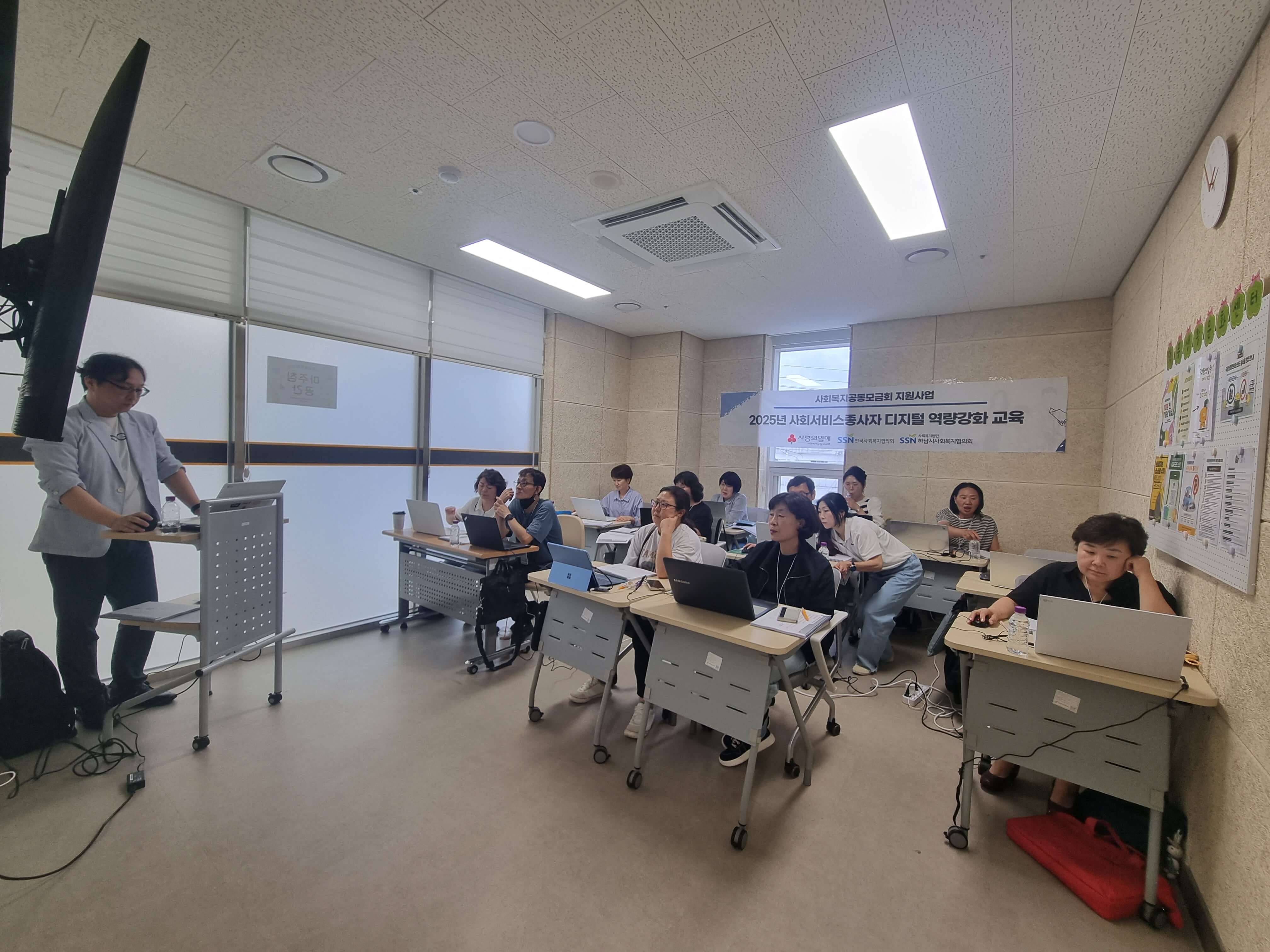 일 자: 2025년 7월 19일 (토) 장 소: 덕풍스포츠문화센터 2층 Room 2 참석자: 12명 교육명: 사회복지종사자를 위한 한글과 엑셀 실무 내 용: 사회복지공동모금회 지원사업인 2025년 사회서비스종사자 디지털 역량강화교육 13차를 12명의 사회복지 종사자들과 함께 '찾아가는 디지털역량강화교육'으로 진행하였습니다. |