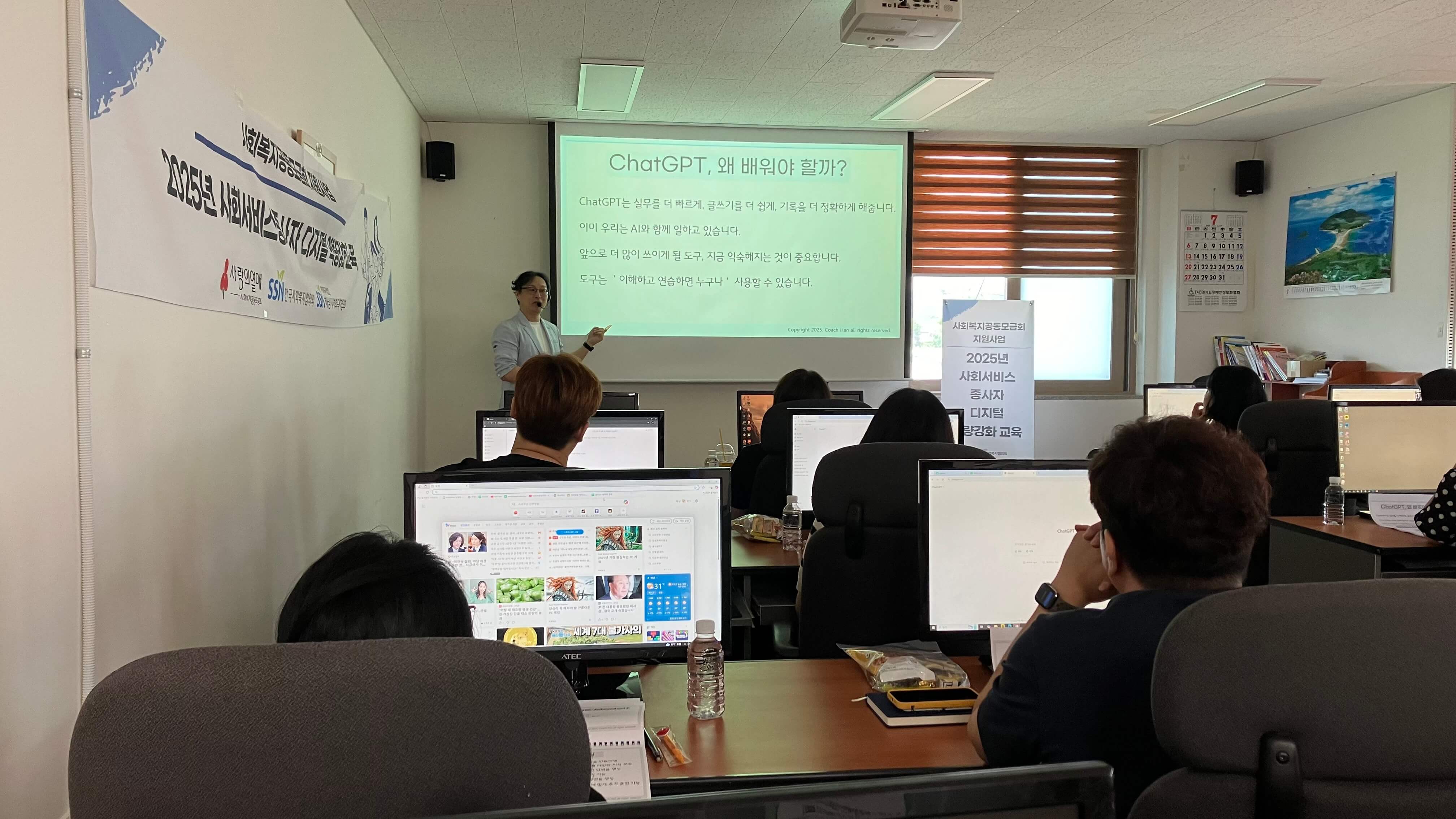 일 자: 2025년 7월 21일 (월) 장 소: 하남시다목적복지회관 참석자: 12명 교육명: Chat GPT 실무 활용법 내 용: 사회복지공동모금회 지원사업인 2025년 사회서비스종사자 디지털 역량강화교육 14차를 12명의 사회복지 종사자들과 함께 '찾아가는 디지털역량강화교육'으로 진행하였습니다. |