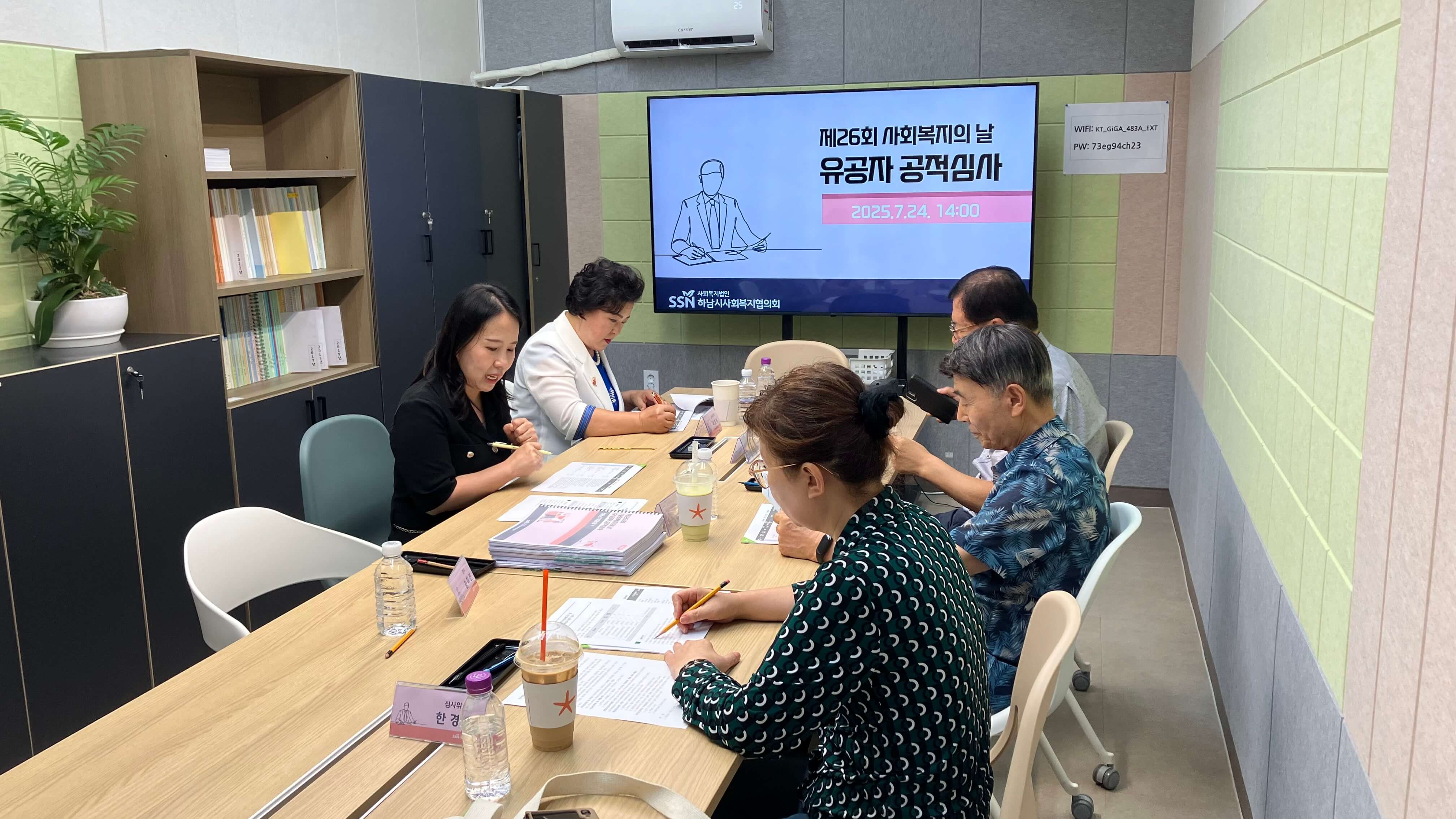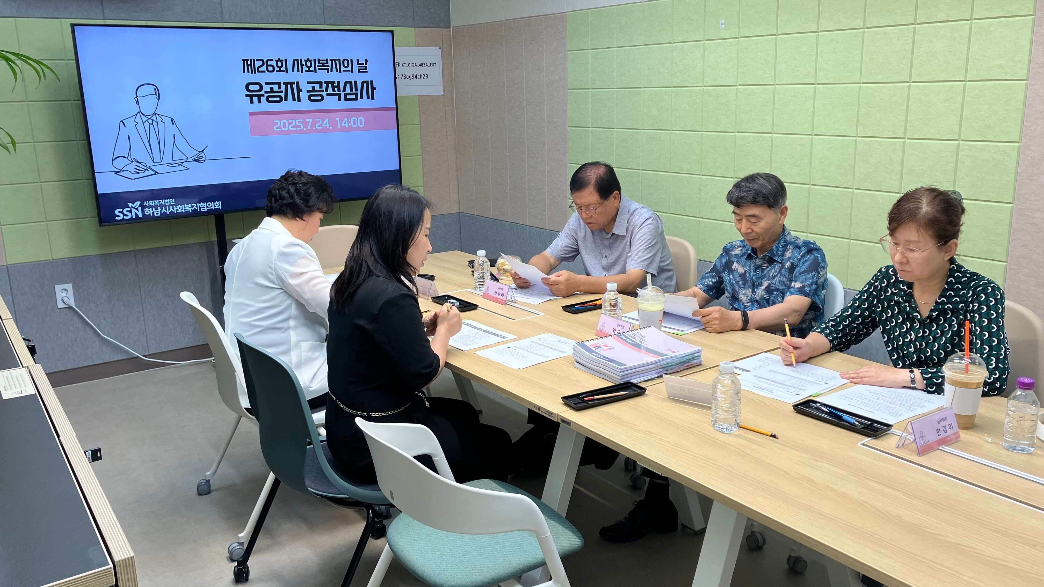 장소: 하남시사회복지협의회 참석자: 회장단 4명, 간사 1명 내용: 2025년 제26회 사회복지의 날을 맞아 표창 수여할 유공자의 공적을 심사하였습니다. |