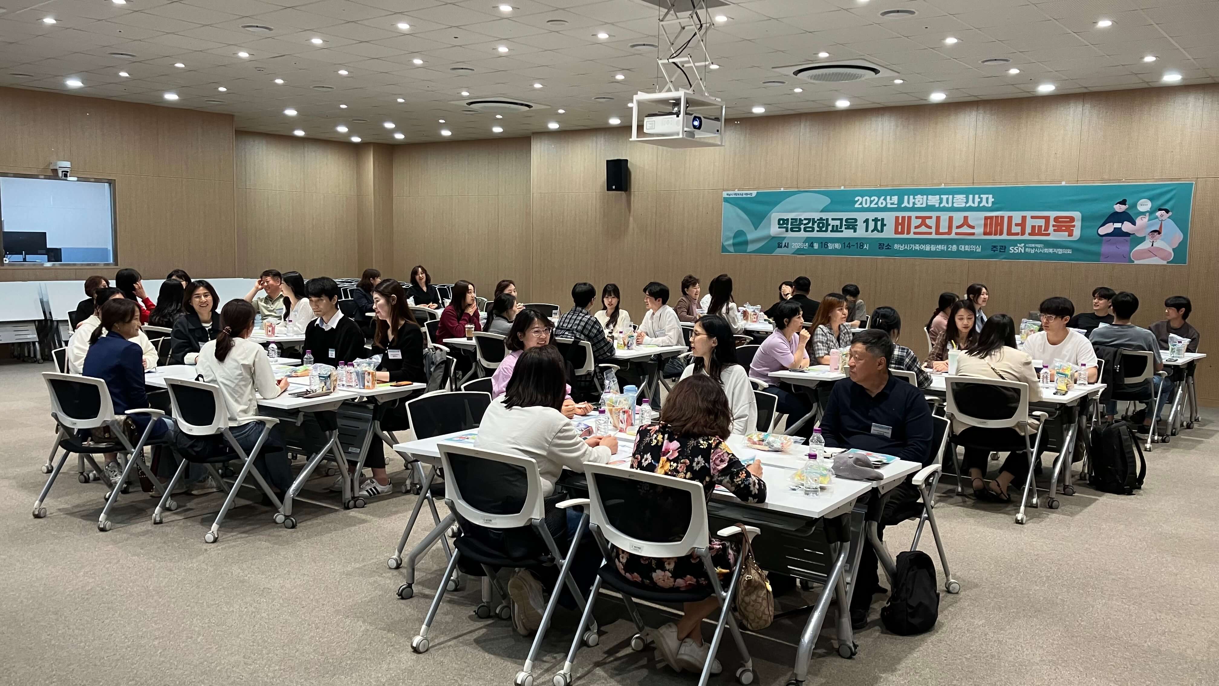 일시: 2026년 4월 16일 (목) 14:00~18:00 장소: 하남시가족어울림센터 2층 대회의실 참석자: 사회복지종사자 50명 교육명: 비즈니스 매너교육 내용: 사회복지현장에서 필요한 '비즈니스 매너'에 대해 역량강화교육을 진행했습니다. |