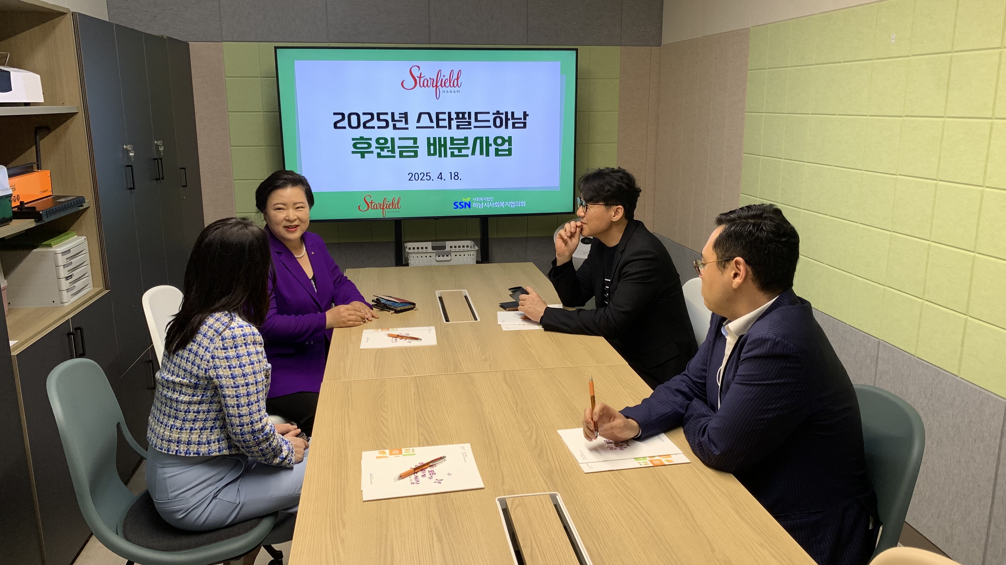 일시: 2025년 4월 18일 (금) 장소: 하남시사회복지협의회 참석자: 협의회장, 스타필드 하남점장 외 2명 내용: 스타필드 하남 후원금 배분사업 후원금 전달식 및 간담회를 진행하였습니다. 올해는 총 18개 기관을 대상으로 후원금이 배분되었으며 각 기관에서 활발하게 사업을 진행 중에 있습니다. |