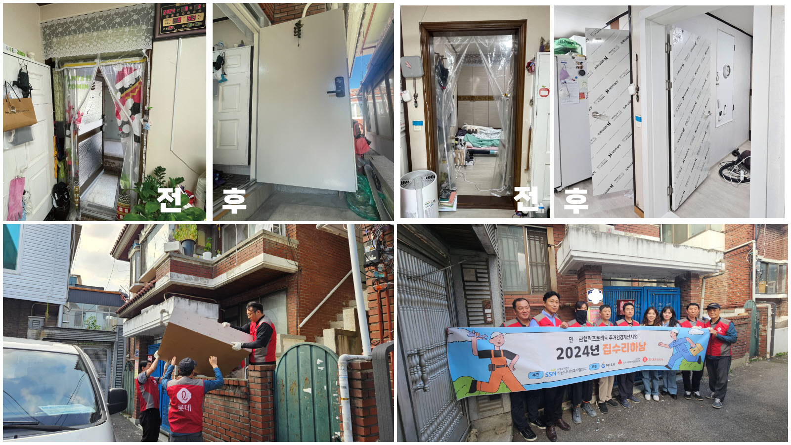 2024년 한 해 동안 6가구의 주거환경 개선을 위해 하남시 건축과, 롯데건설(주) 보바스병원 건설현장, 하남시사회복지협의회가 협력하여 집수리를 통해 관내 주거 취약계층의 삶의 질 개선을 위해 노력하였습니다. |