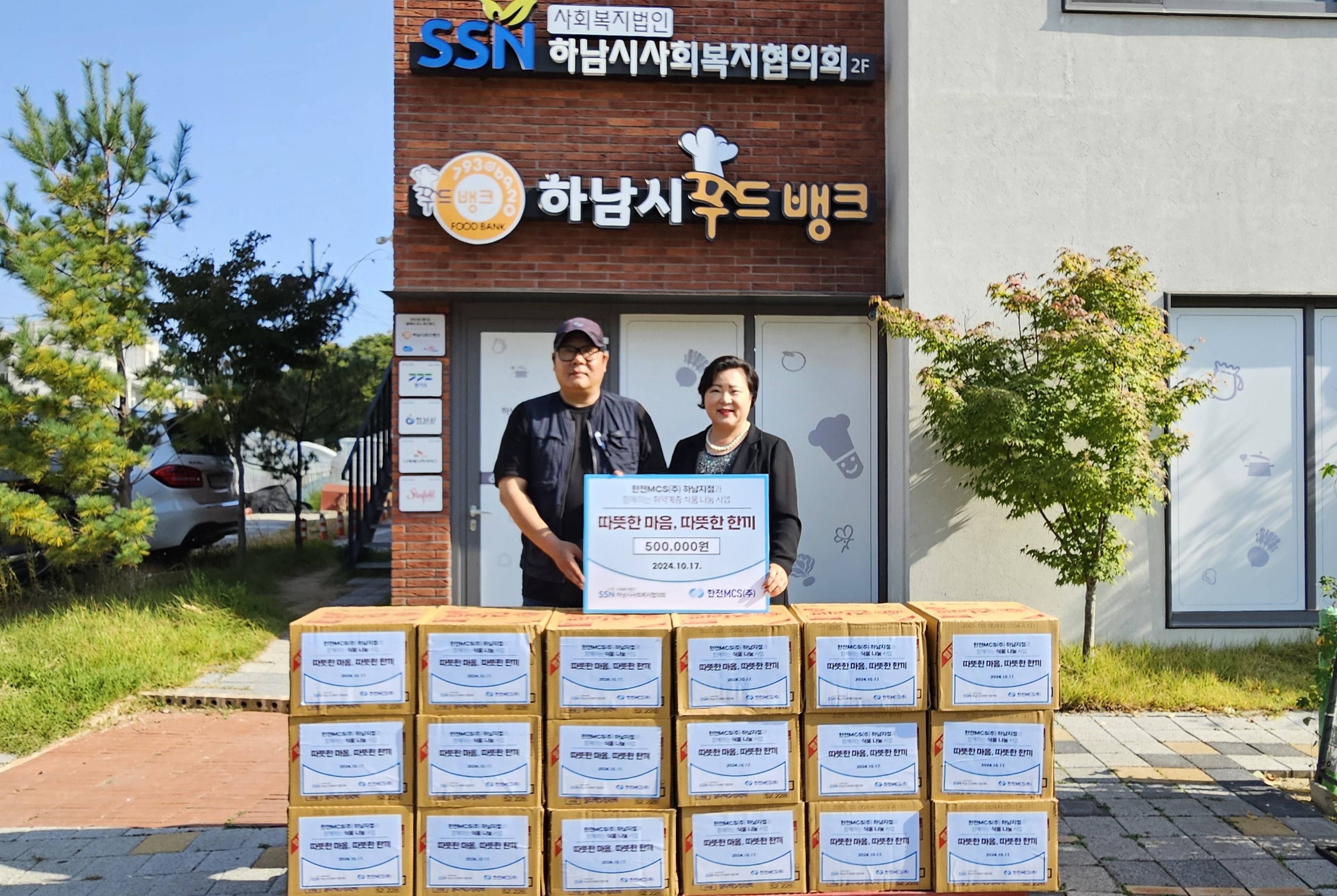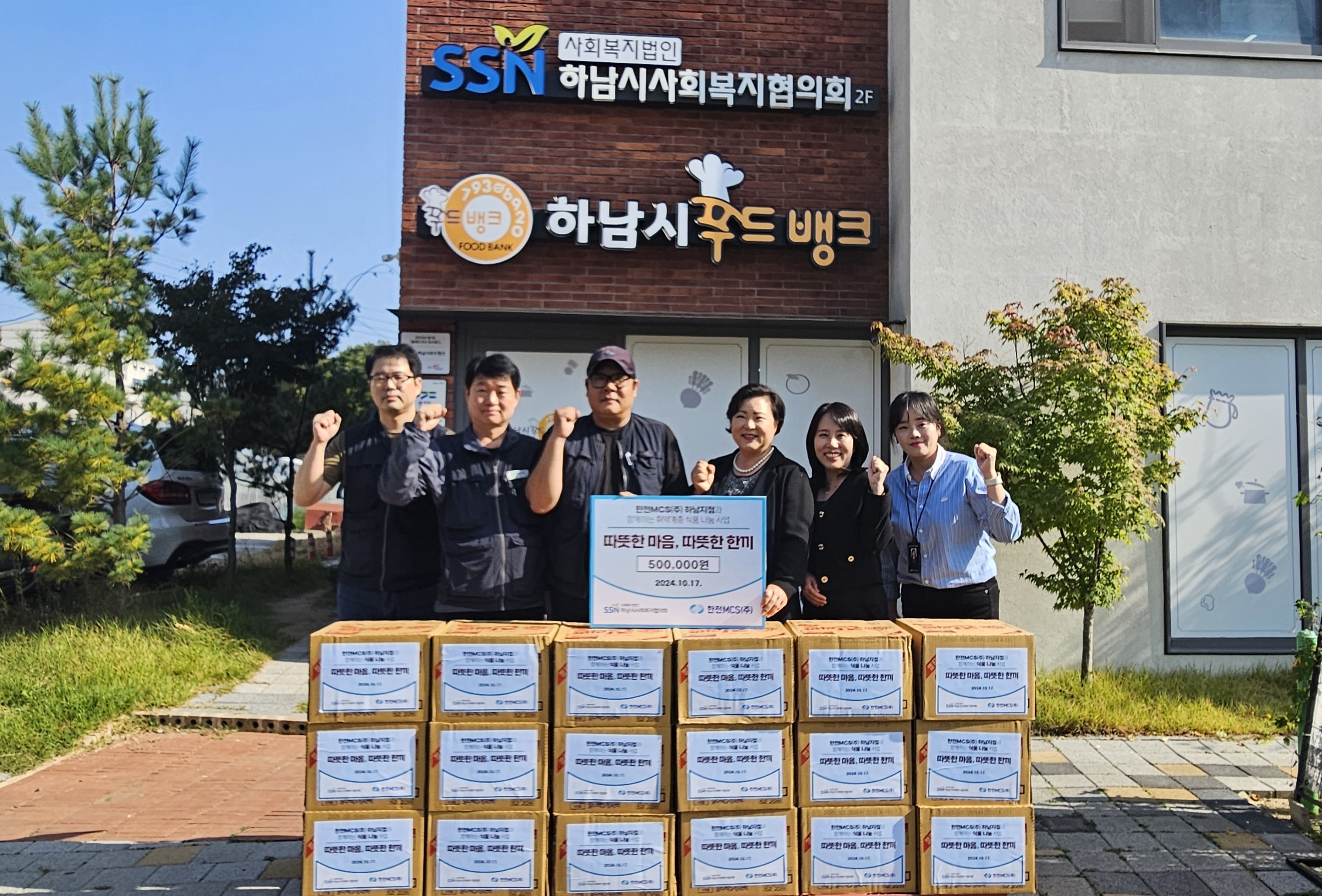 한전MCS(주) 하남지점은 직원들의 러브펀드로 조성된 후원금으로 따뜻한 마음, 따뜻한 한끼 사업을 통해 하남시푸드뱅크 이용자를 위한 50만원 상당의 라면을 후원해주셨습니다. |