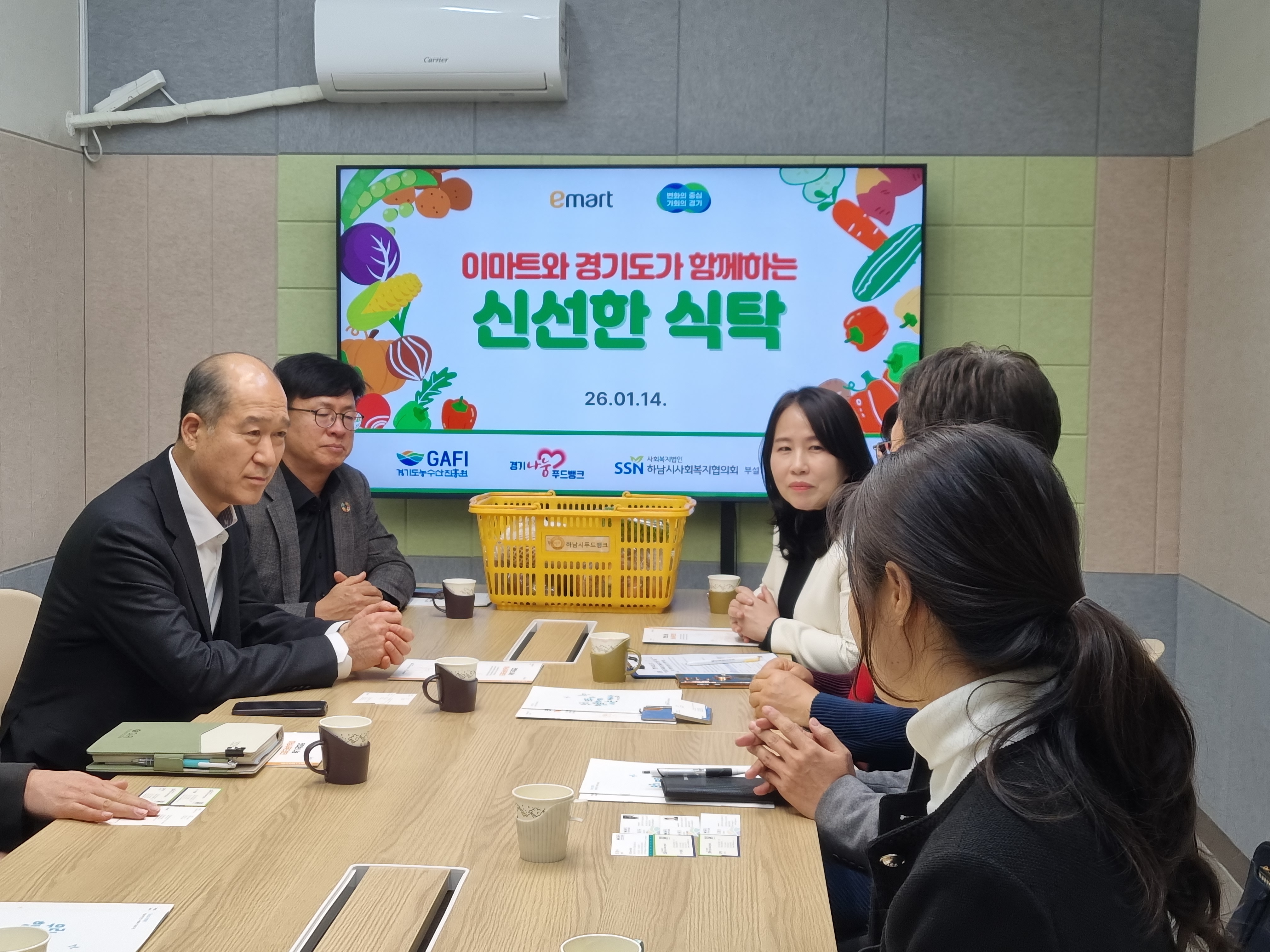 내용 : 하남시푸드뱅크 본점에서 기부기업·협력기관·수행기관이 함께 꾸러미 배분 현장을 점검하며 공정한 지원과 투명성 강화를 도모하고 푸드뱅크 이용자에게 물품꾸러미를 전달하였습니다. |