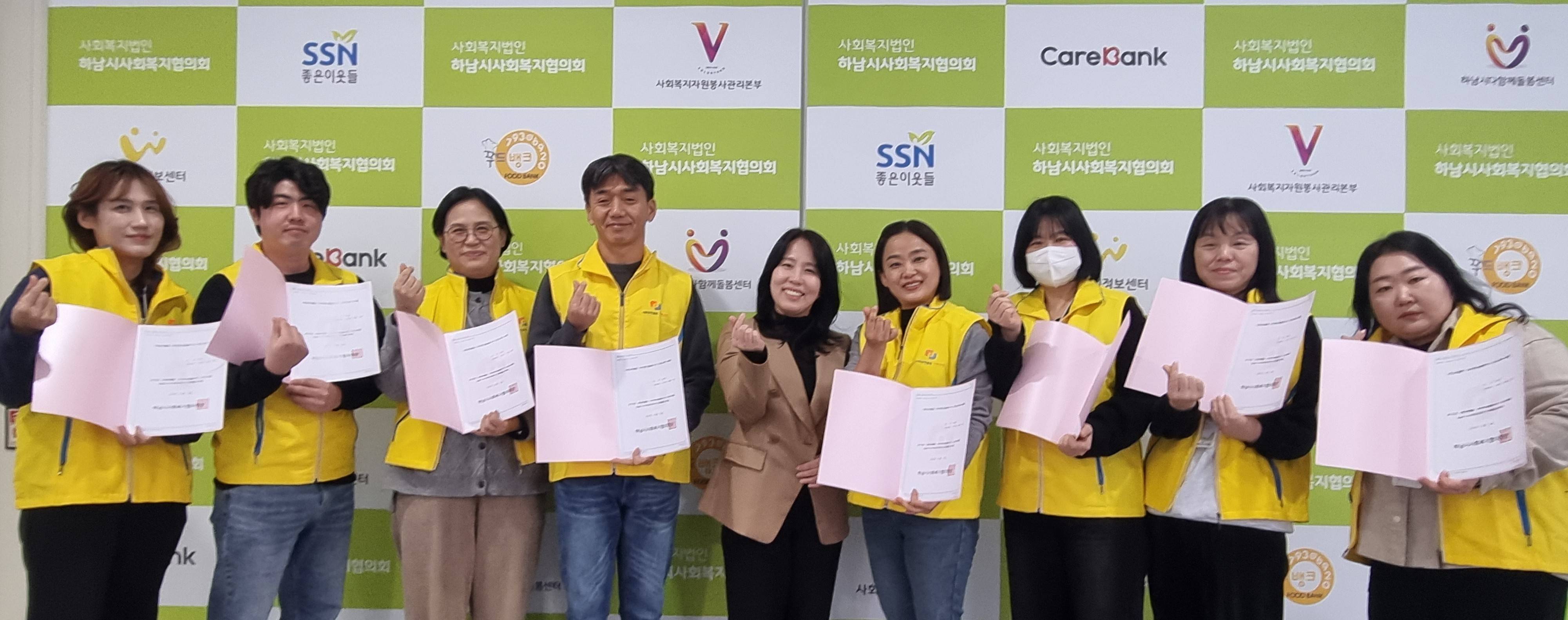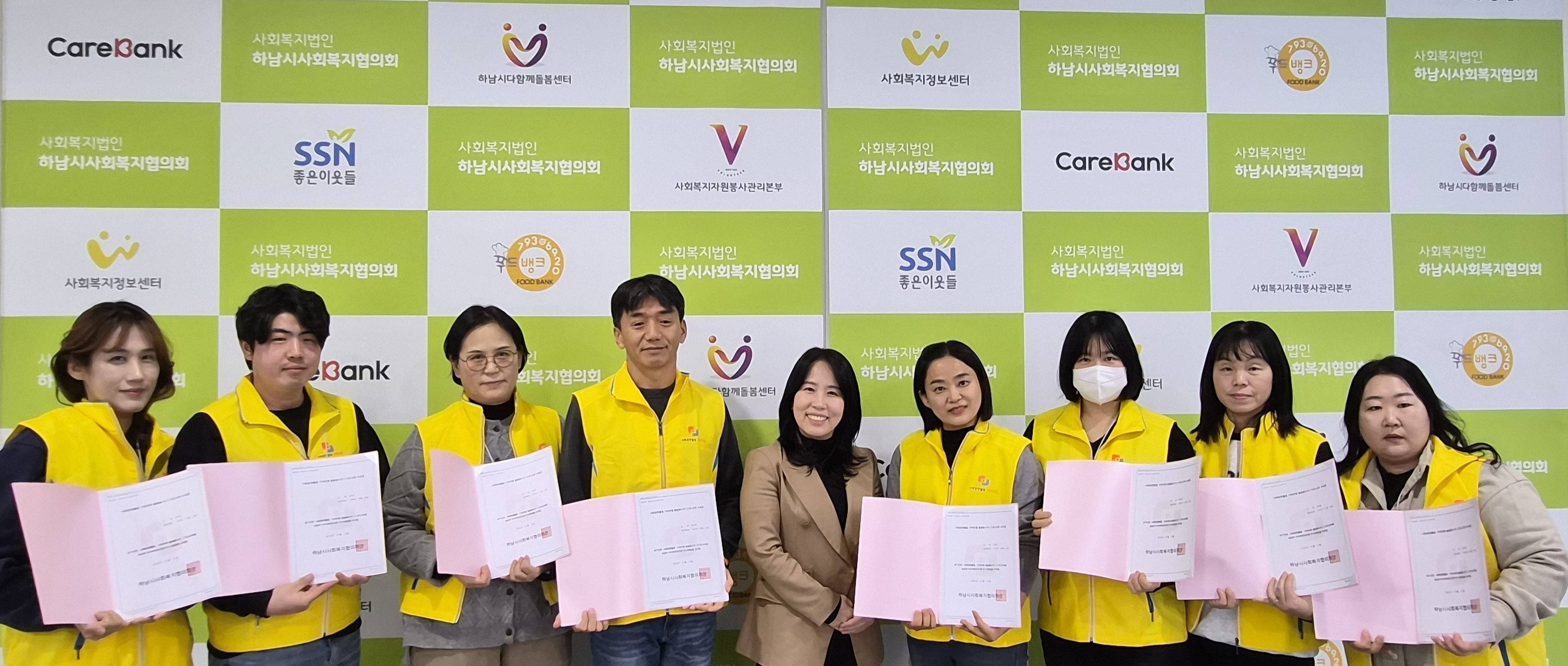 일 시: 2026년 1월 13일 (화) 장 소: 하남시사회복지협의회 사무국 참석자: 8명 교육명: 케어뱅크 돌봄봉사자 교육 내 용: 케어뱅크는 돌봄이 필요한 65세 이상 어르신에게 돌봄활동을 제공하는 사업으로 돌봄봉사자로 하여금 돌봄봉사에 대한 사명감 및 책임감을 고취시키고자 돌봄봉사자 기초교육을 진행하였습니다. |