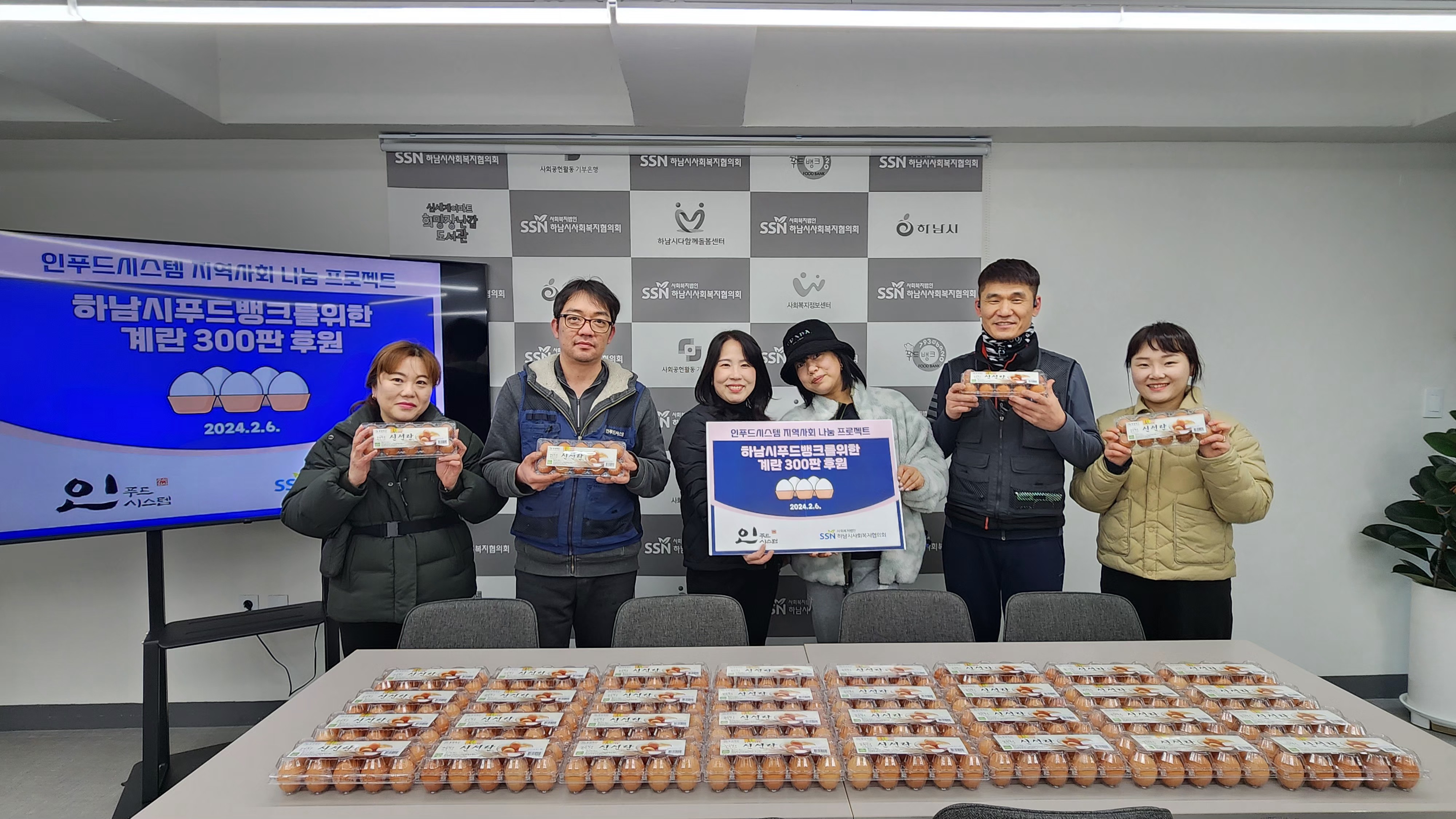 2024.02.06.(화) 주식회사 인푸드시스템(대표 이정민)은 설명절을 맞이하여 푸드뱅크 이용자들을 위해 계란 300판을 후원해주었습니다. |