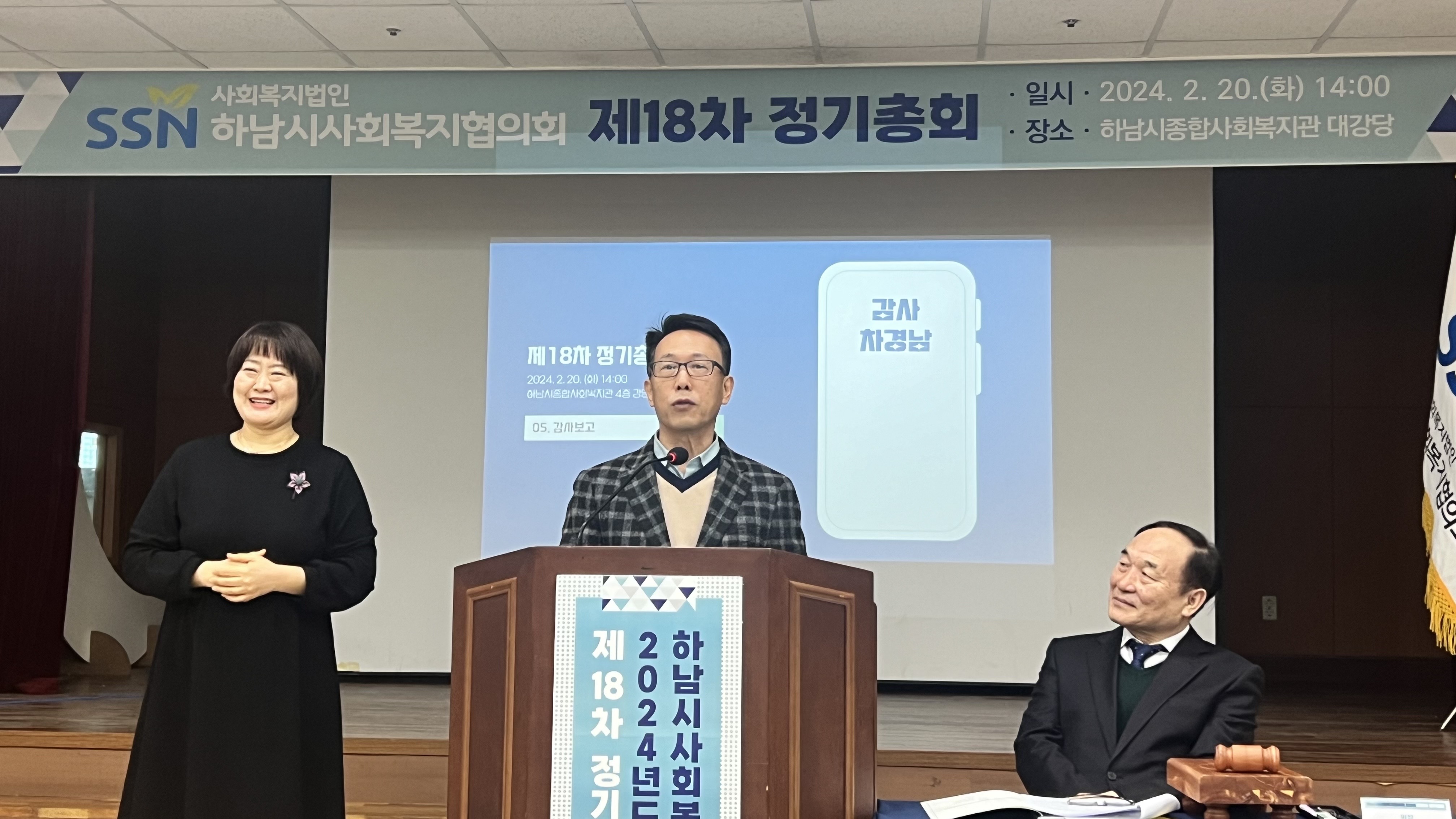 하남시종합사회복지관 4층 대강당 기관회원과 개인회원을 모시고 2023년도 사업실적 및 세입세출 결산과 2024년도 사업계획 및 세입세출 예산등을 보고하고 정관개정 외 3건의 부의안을 심의하는 정기총회를 개최하였습니다. 이와 더불어 제7대 회장선거도 함께 진행하였습니다.