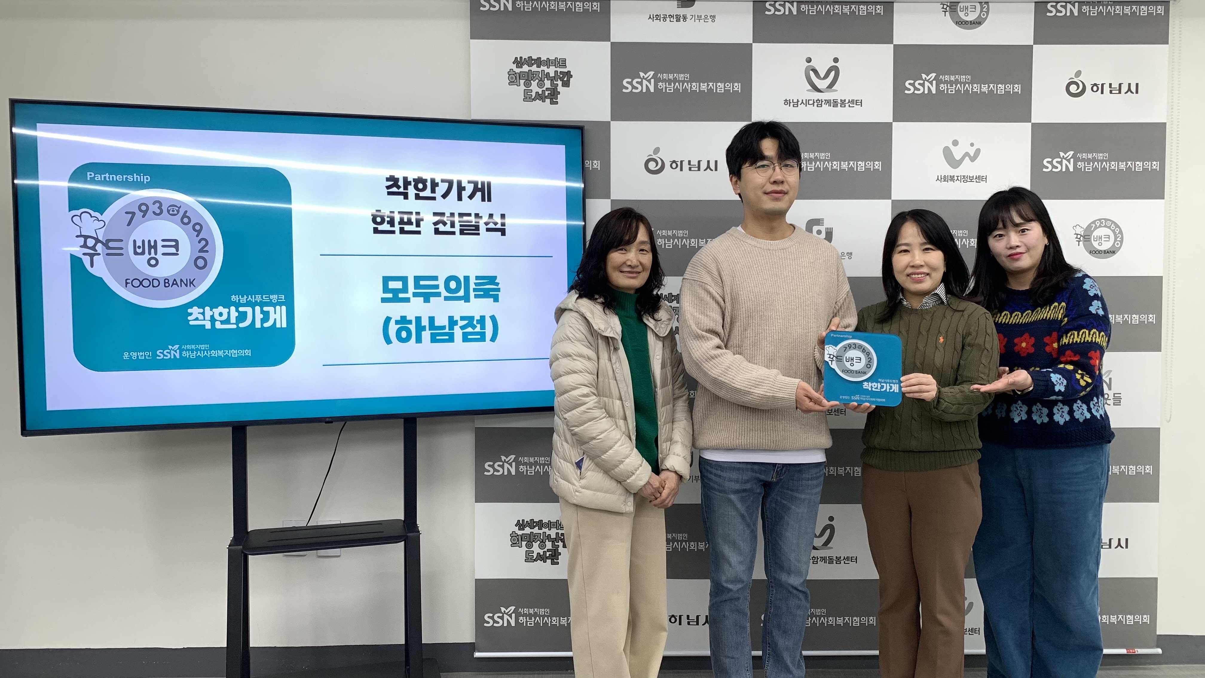 모두의 죽 하남점에서 푸드뱅크 이용자를 위해 뜨끈한 팥죽 60인분을 후원하여 현판전달식도 함께 진행함. |