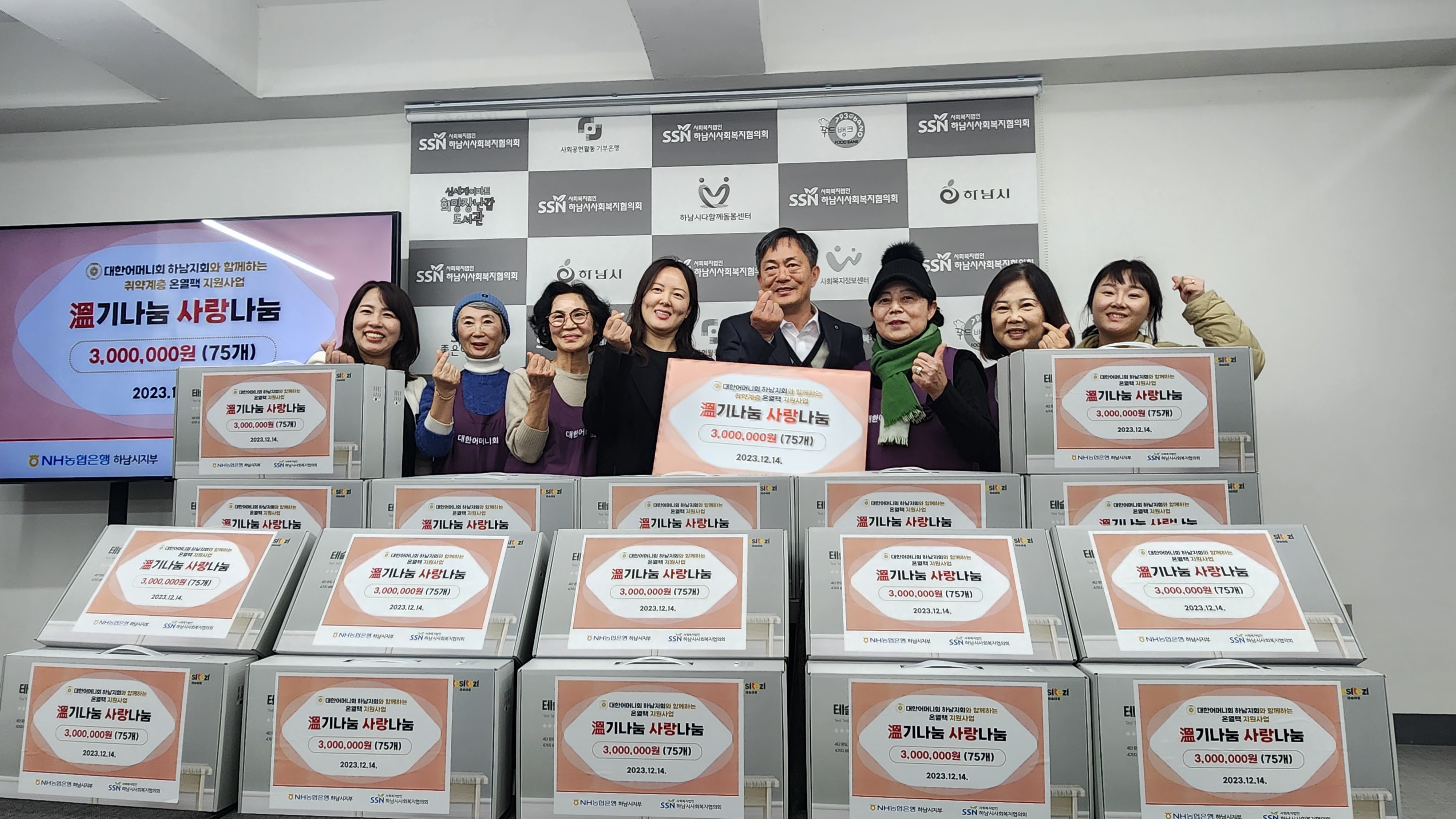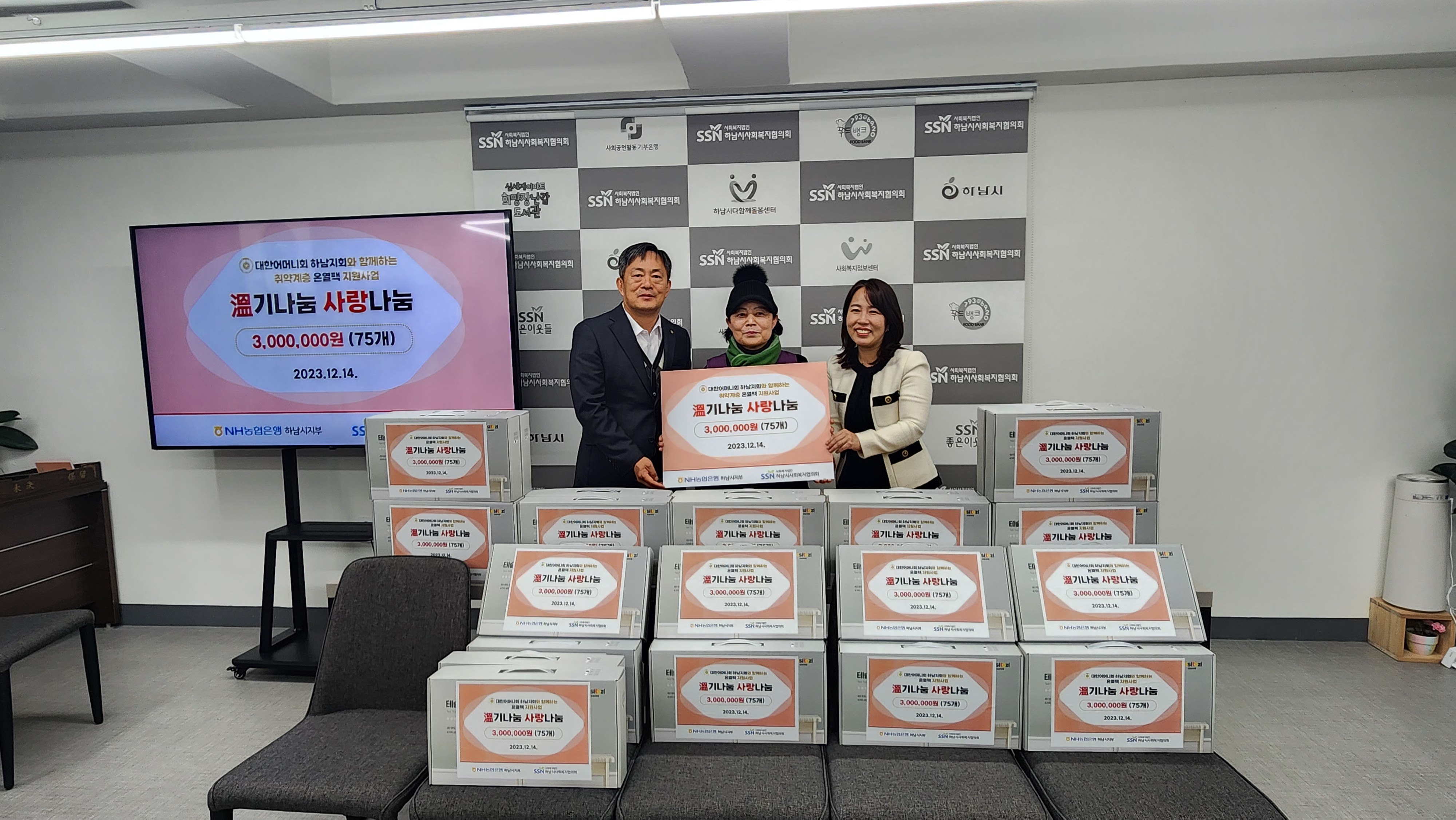 농협하남시지부가 후원하고 대한어머니회하남시지회와 함께하는 취약계층을 위한 온열팩 전달식을 진행했습니다.