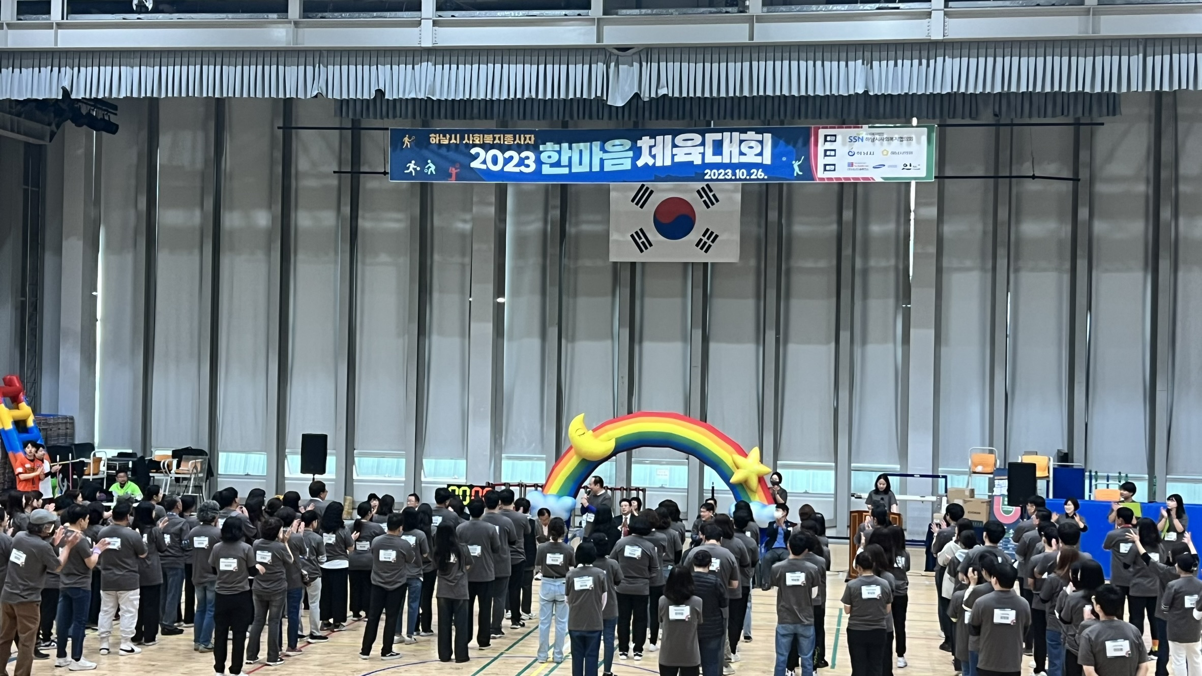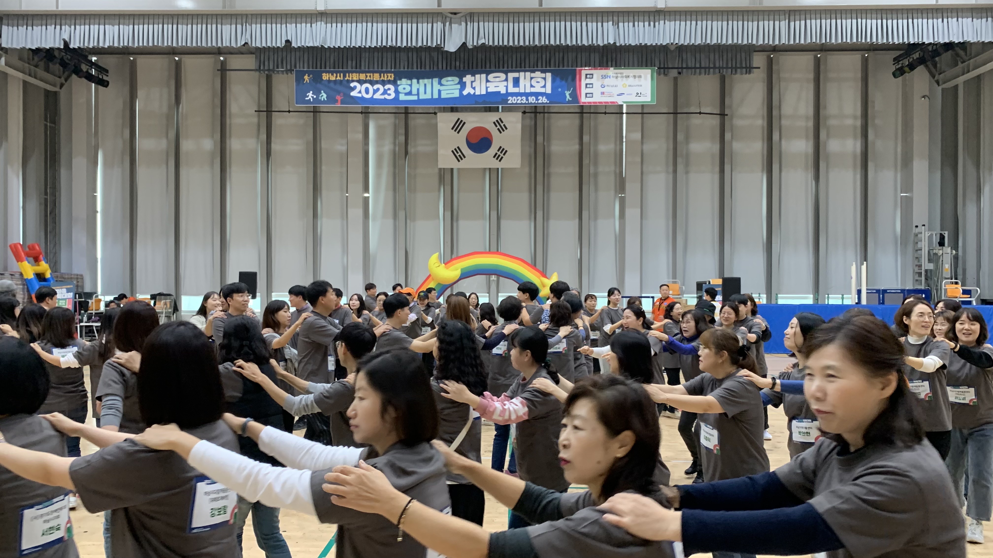 하남시에 사회복지종사자 160여명이 모여 한마음체육대회를 개최하였습니다.