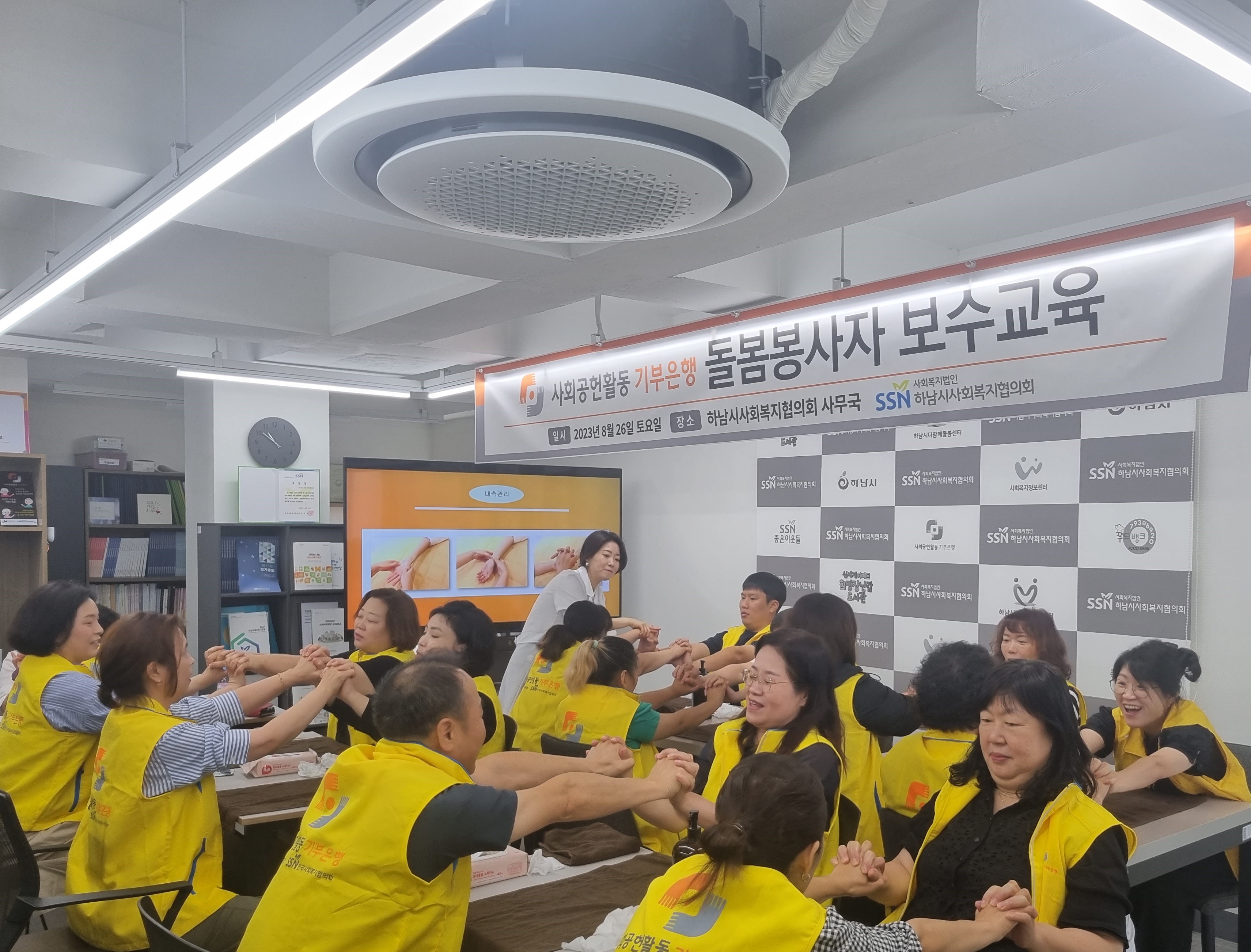 2023.8.26.(토) 사회공헌활동 기부은행은 돌봄이 필요한 만 65세 이상 어르신에게 돌봄활동을 제공하는 사업으로 돌봄봉사자로 하여금 돌봄봉사에 대한 사명감 및 책임감을 고취시키고 돌봄역량 강화를 위하여 돌봄봉사자 역량강화교육(손마사지교육)을 진행하였습니다. |