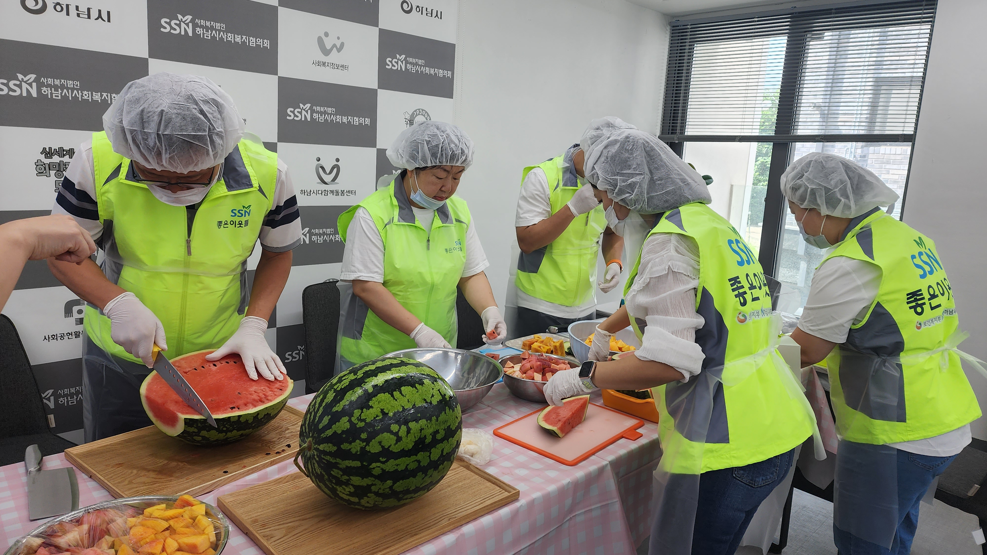 좋은이웃들 봉사자들이 좋은이웃들 대상자 발굴캠페인을 위해 과일컵을 만들고 관내 경로당과 하남시청 공원을 방문하여 사업홍보와 발굴캠페인을 진행하였습니다.