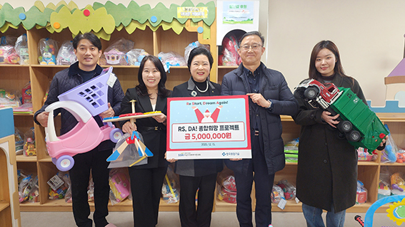 내용 : (주)한국종합기술은 「RS, DA! 종합희망 프로젝트」의 일환으로 희망장난감도서관 운영과 푸드뱅크 물품 후원을 위한 전달식을 진행하였습니다.