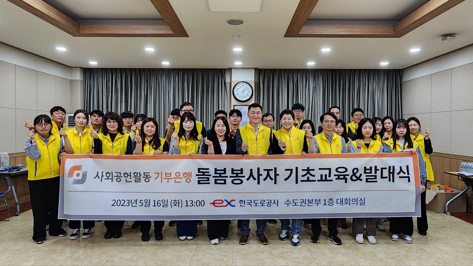 2023.5.16.(화) 사회공헌활동 기부은행은 돌봄이 필요한 만 65세 이상 어르신에게 돌봄활동을 제공하는 사업으로 돌봄봉사자로 하여금 돌봄봉사에 대한 사명감 및 책임감을 고취시키고자 한국도로공사 수도권본부를 방문하여 돌봄봉사자 기초교육을 진행하였습니다. |