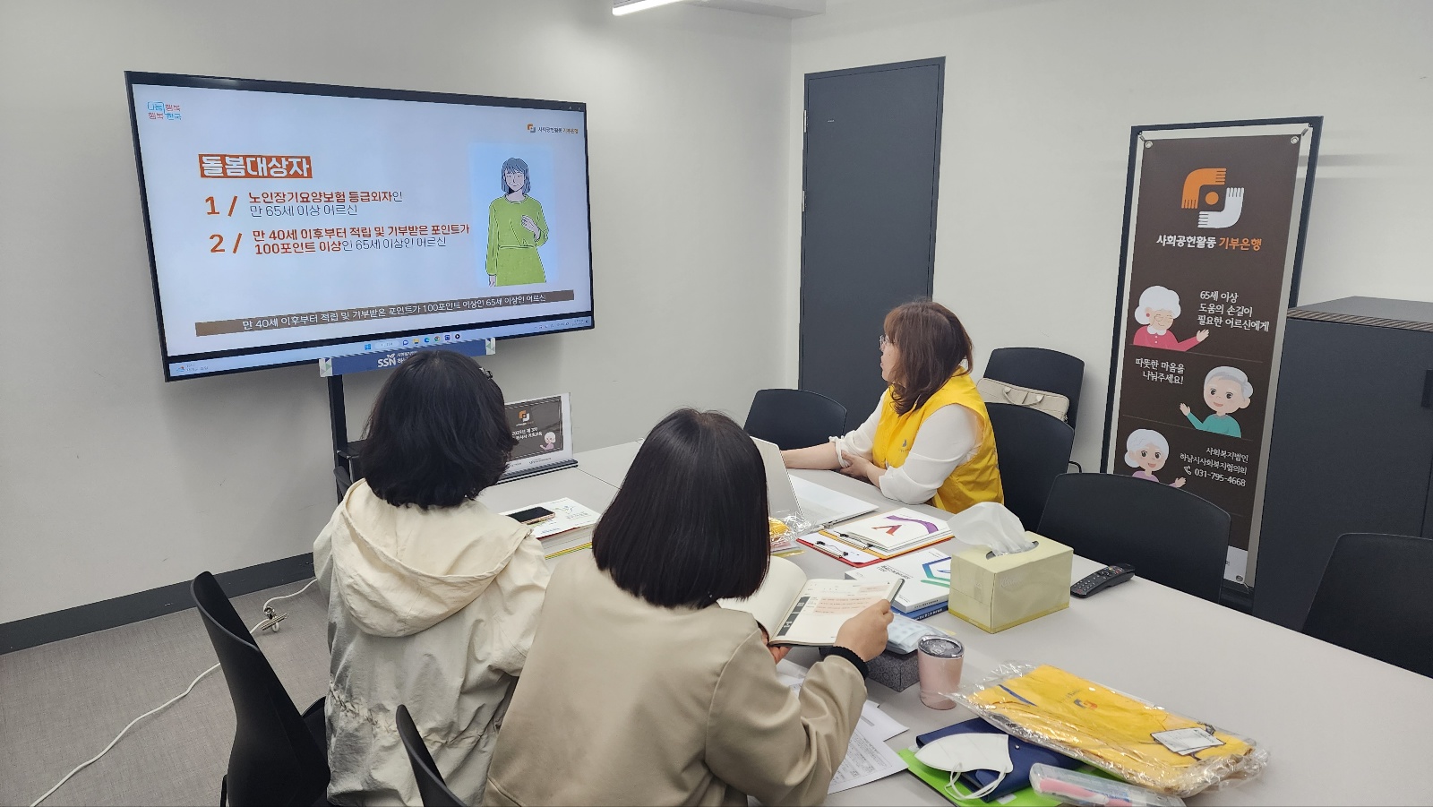 2023.4.24.(월) 사회공헌활동 기부은행은 돌봄이 필요한 만 65세 이상 어르신에게 돌봄활동을 제공하는 사업으로 돌봄봉사자로 하여금 돌봄봉사에 대한 사명감 및 책임감을 고취시키고자 기초교육을 진행하였습니다. |