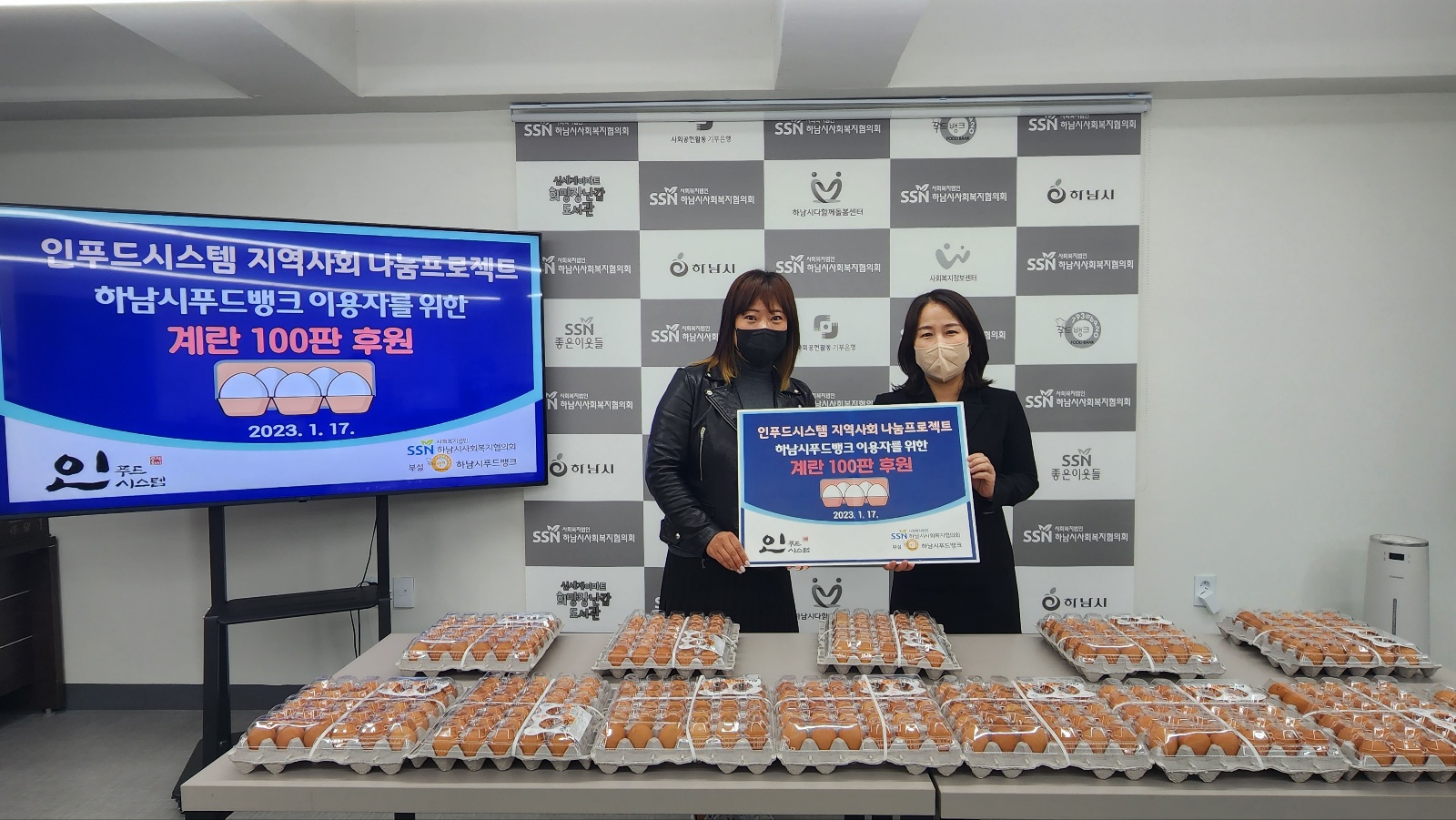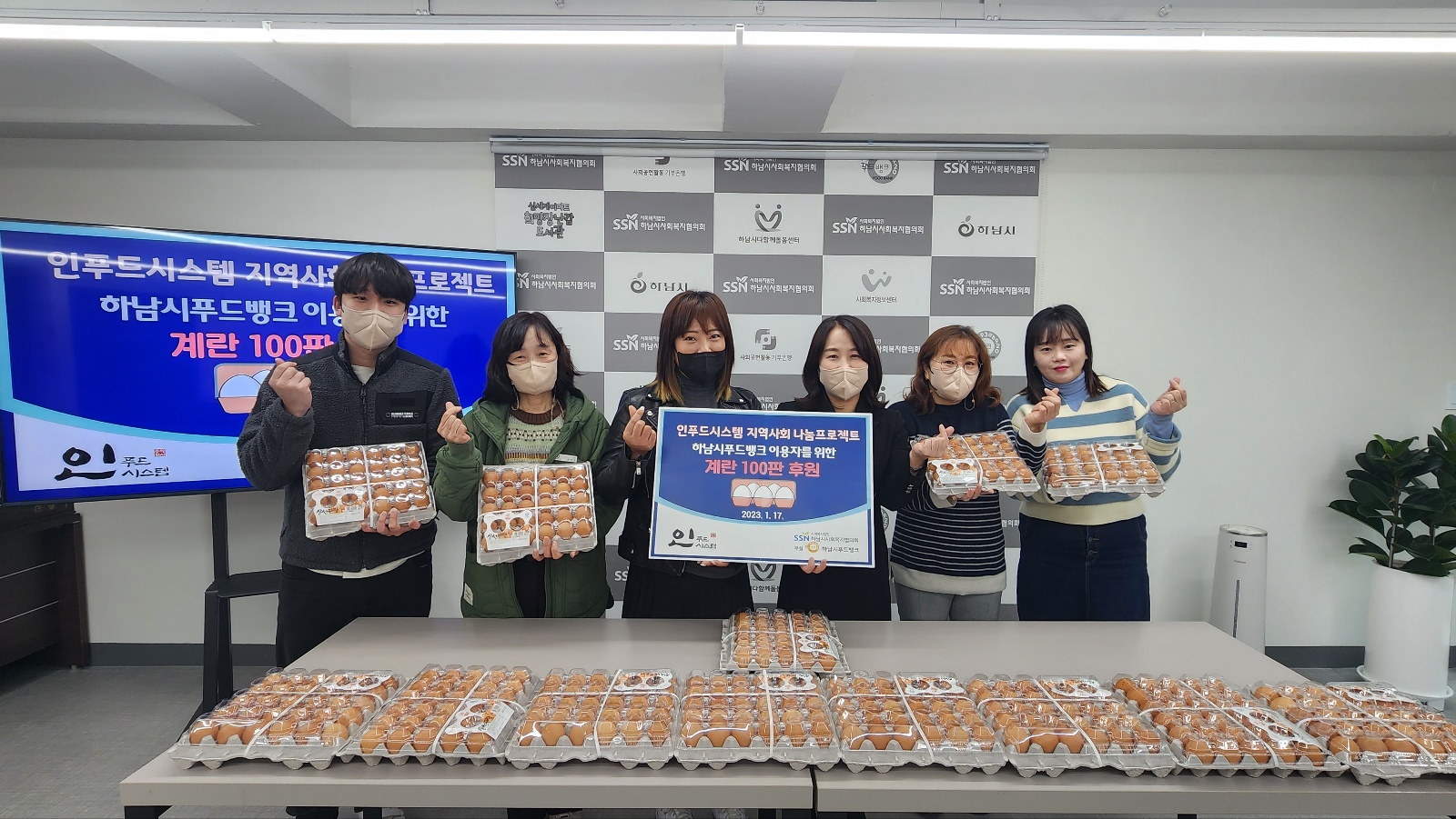 2023.01.17.(화) 주식회사 인푸드시스템(대표 이정민)은 설명절을 맞이하여 푸드뱅크 이용자들을 위해 계란 100판을 후원해주었습니다. |