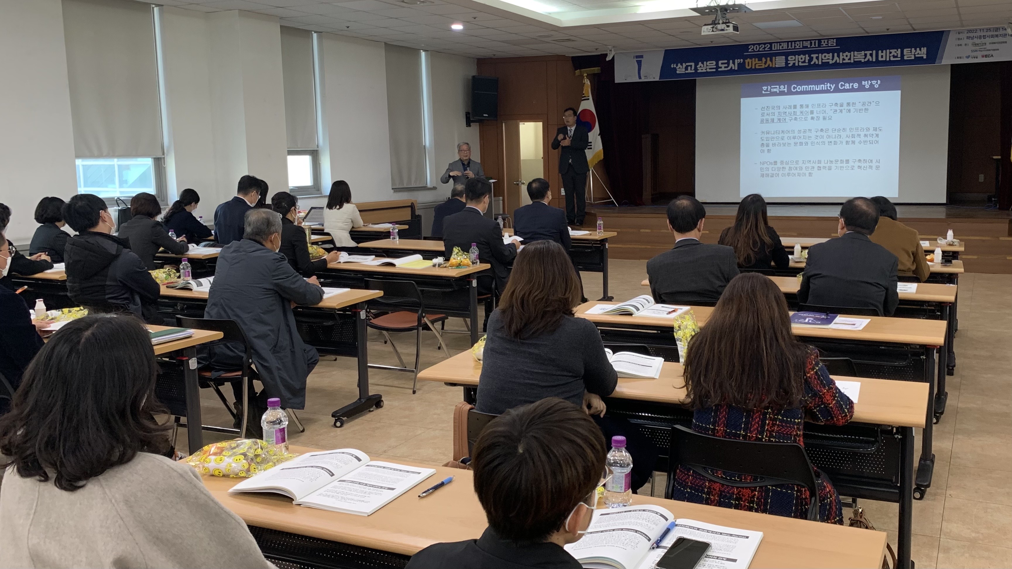 2022.11.25. "살고 싶은 도시" 하남시를 위한 지역사회복지 비전 탐색이라는 주제로 사회복지포럼을 개최했습니다. 130여명의 민·관 사회복지 관계자들이 한 자리에 모여 사회복지전문가의 강연과 발제, 열린 방식의 토론을 통해 지역의 사회복지가 당면하고 있는 현안 문제들에 대해 논의하고 미래 비전을 탐색하는 자리였습니다. |