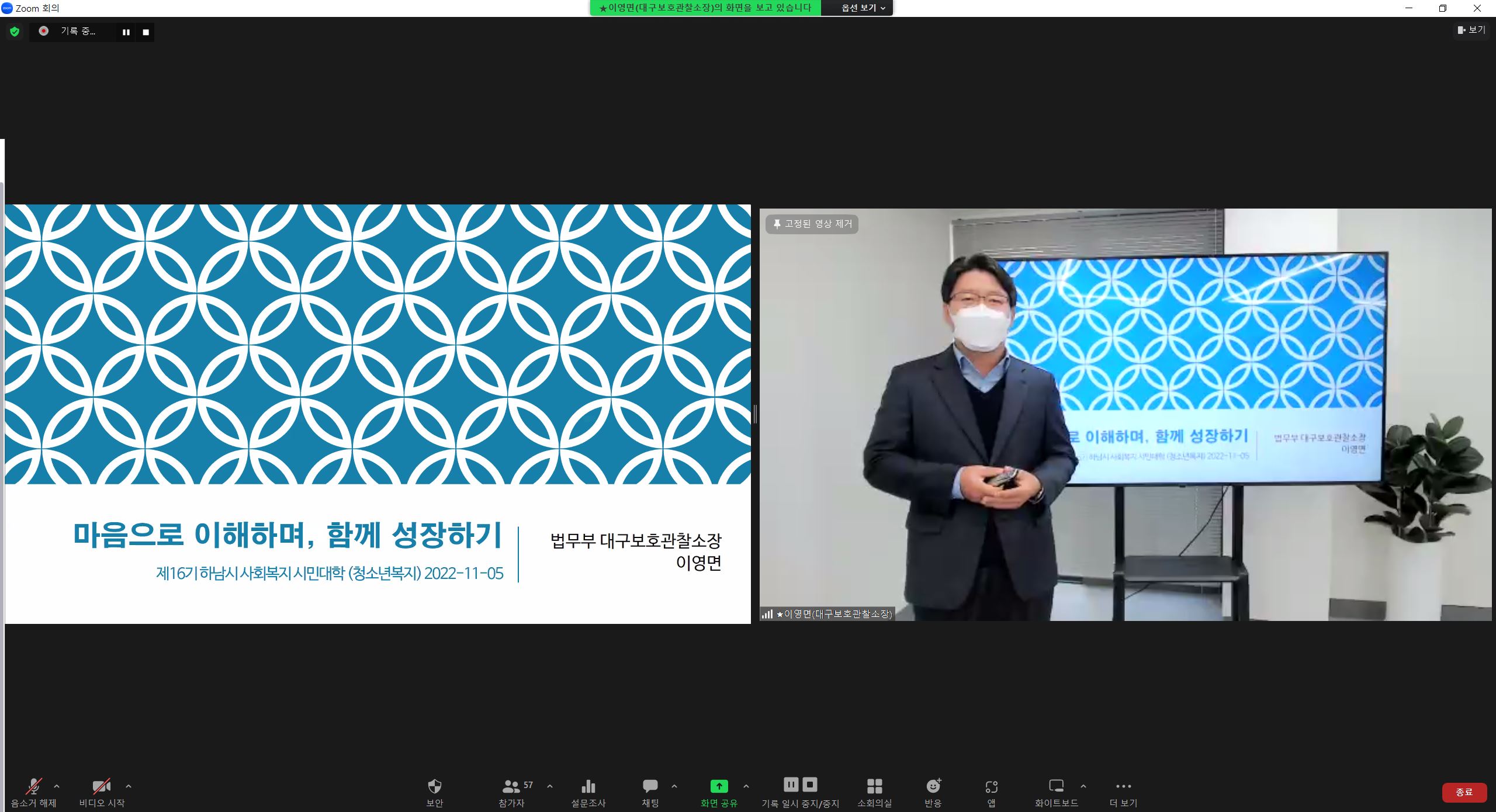 2022.11.05. 대구보호관찰소장 이영면 소장님과 청소년복지에 대해 알아보는 시간이었습니다. |