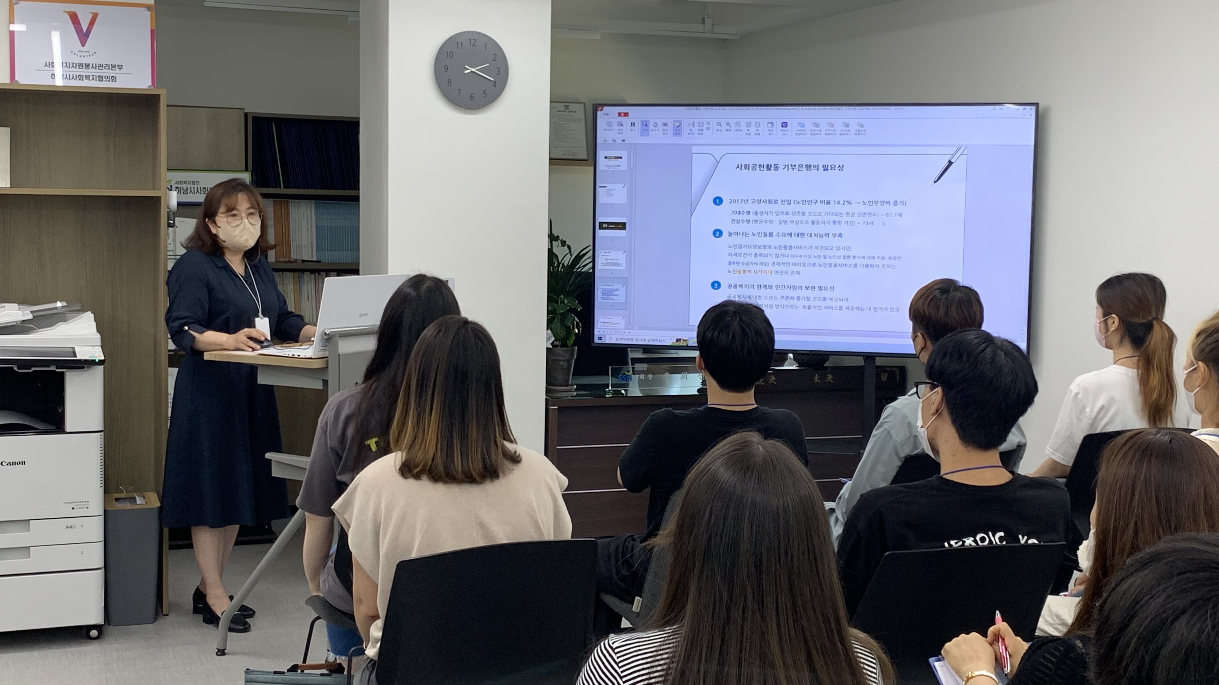 2022.07.01. (금) 사회공헌활동 기부은행은 돌봄이 필요한 만 65세 이상 어르신에게 돌봄활동을 제공하는 사업으로 돌봄봉사자로 하여금 돌봄봉사에 대한 사명감 및 책임감을 고취시키고자 기초교육을 진행하였습니다.
