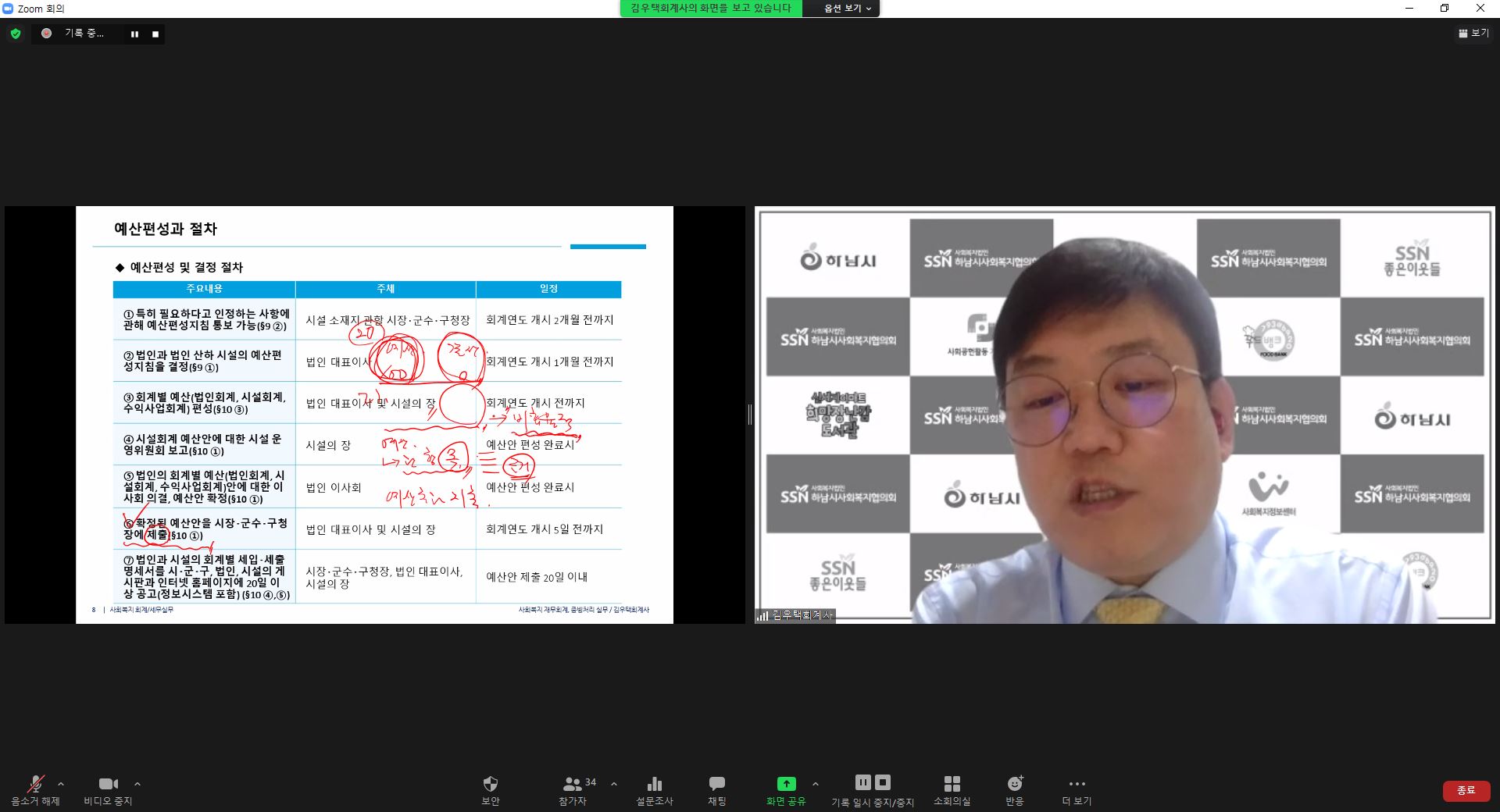 2022.5.4. <사회복지 회계 및 증빙처리 실무>에 대해 진성회계법인 김우택 회계사를 강사로 모시고 사회복지종사자들을 대상으로 역량강화교육을 진행하였습니다. |