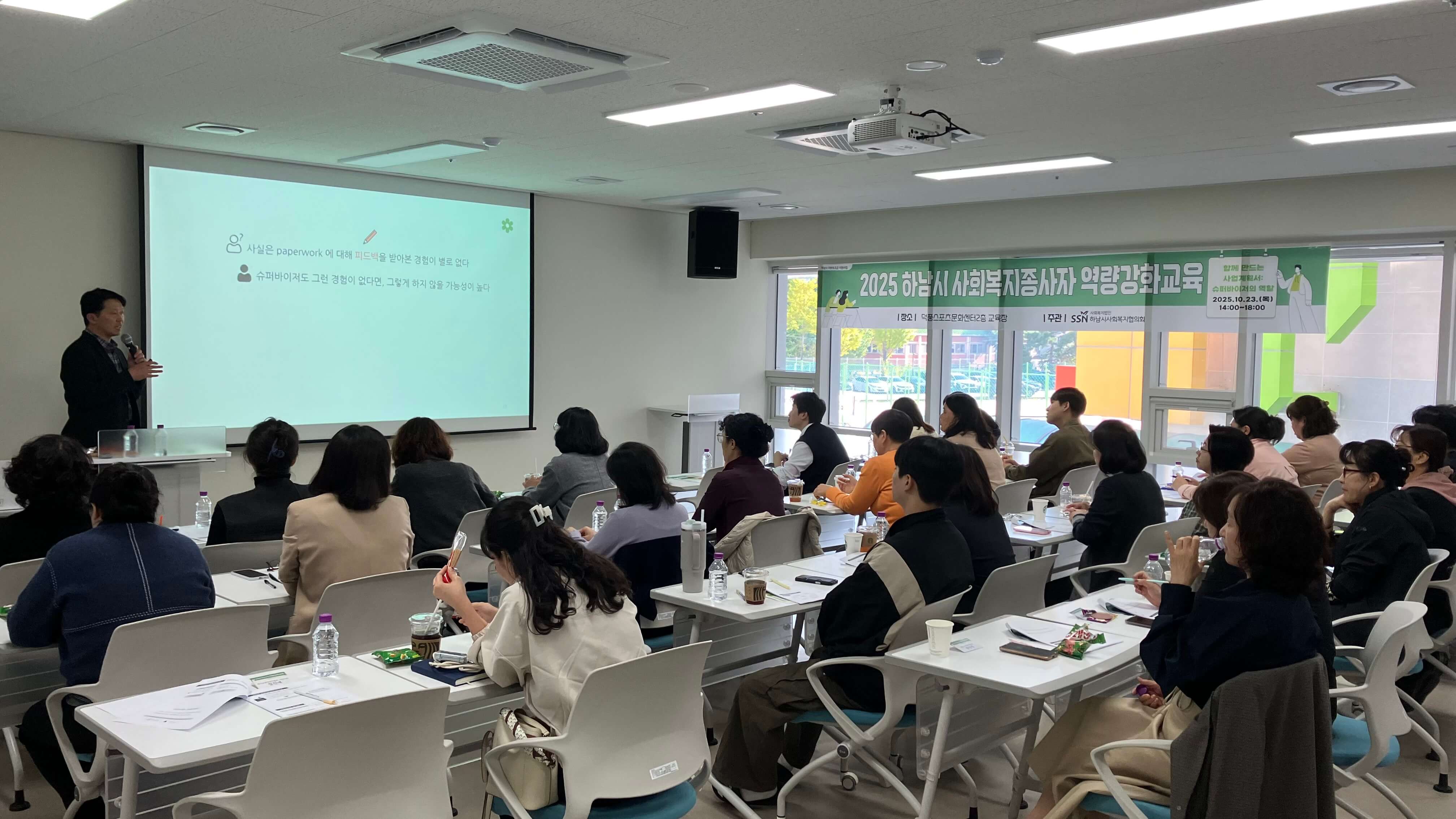 일시: 2025년 10월 23일 (목) 14:00~18:00 장소: 덕풍스포츠문화센터 2층 교육장 참석자: 사회복지종사자 29명 교육명: 함께 만드는 사업계획서: 슈퍼바이저의 역할 내용: 사회복지현장에서 직무수행에 필요한 '사업계획서와 슈퍼비전'에 대해 역량강화교육을 진행했습니다. |