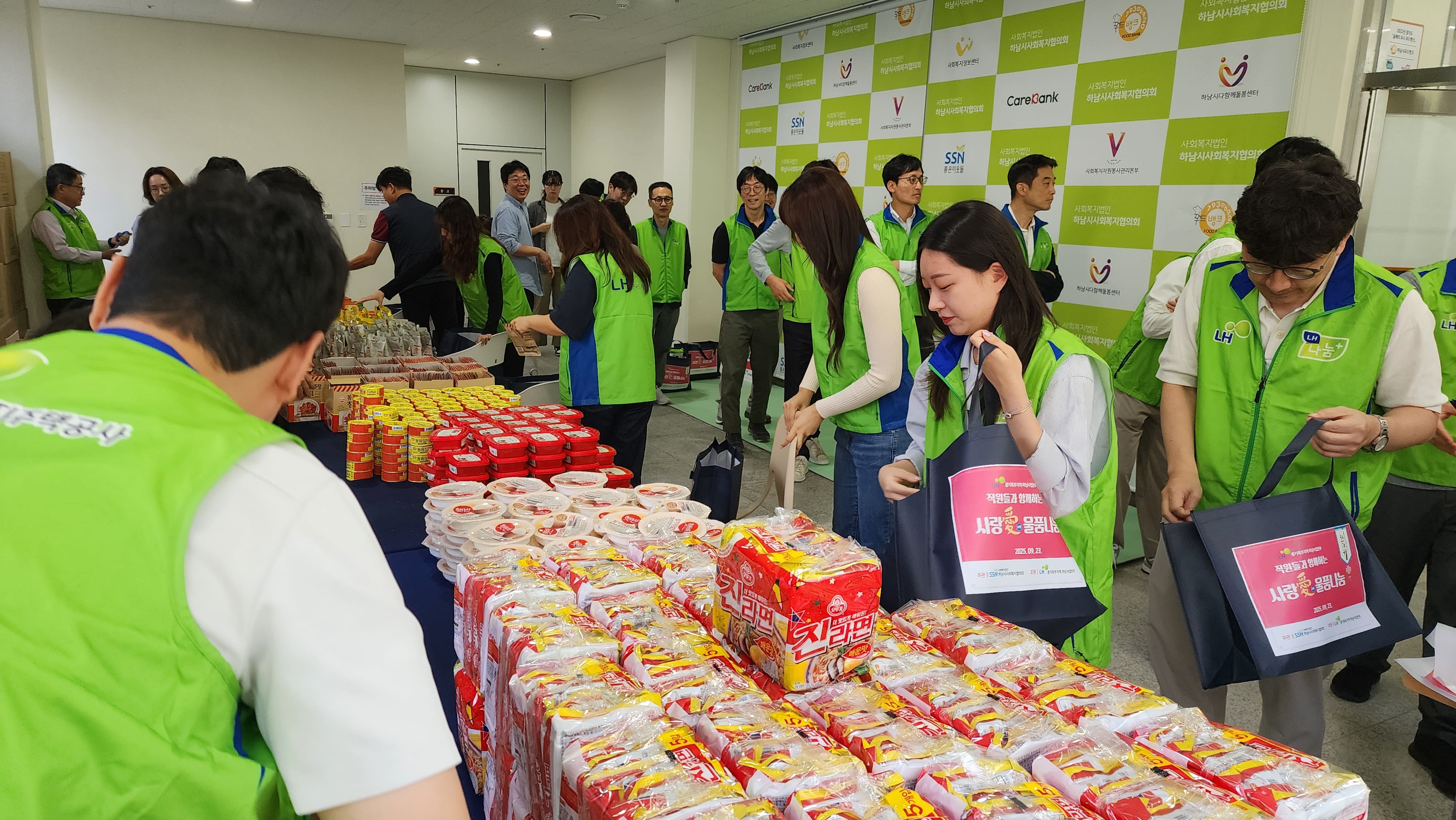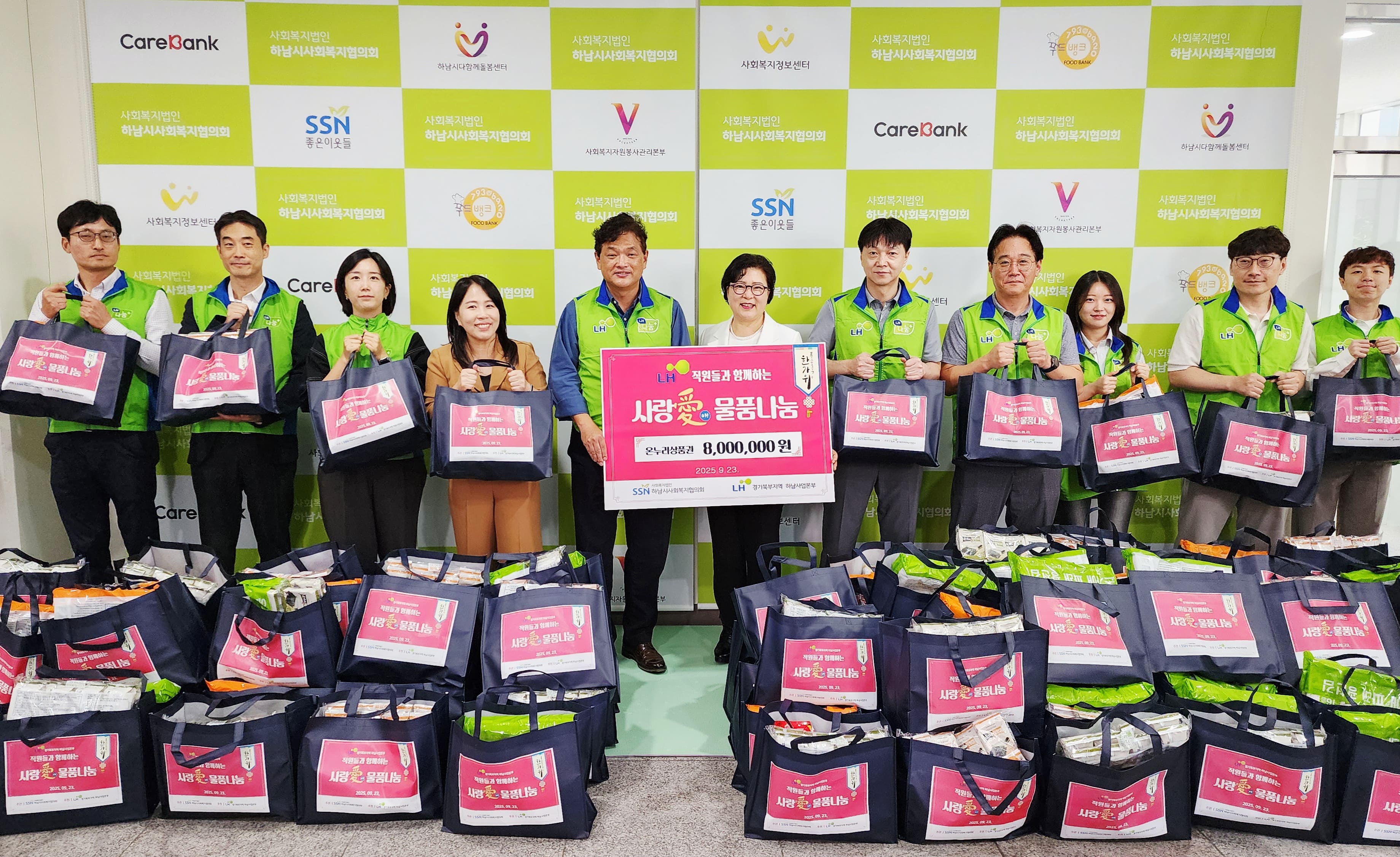 내 용: LH 경기북부 하남사업본부 임직원들의 후원으로 한가위를 맞이하여 뜻을모아 물품백을 포장하고 직접 전달하는 사랑愛 물품나눔 사업을 진행하였습니다 |