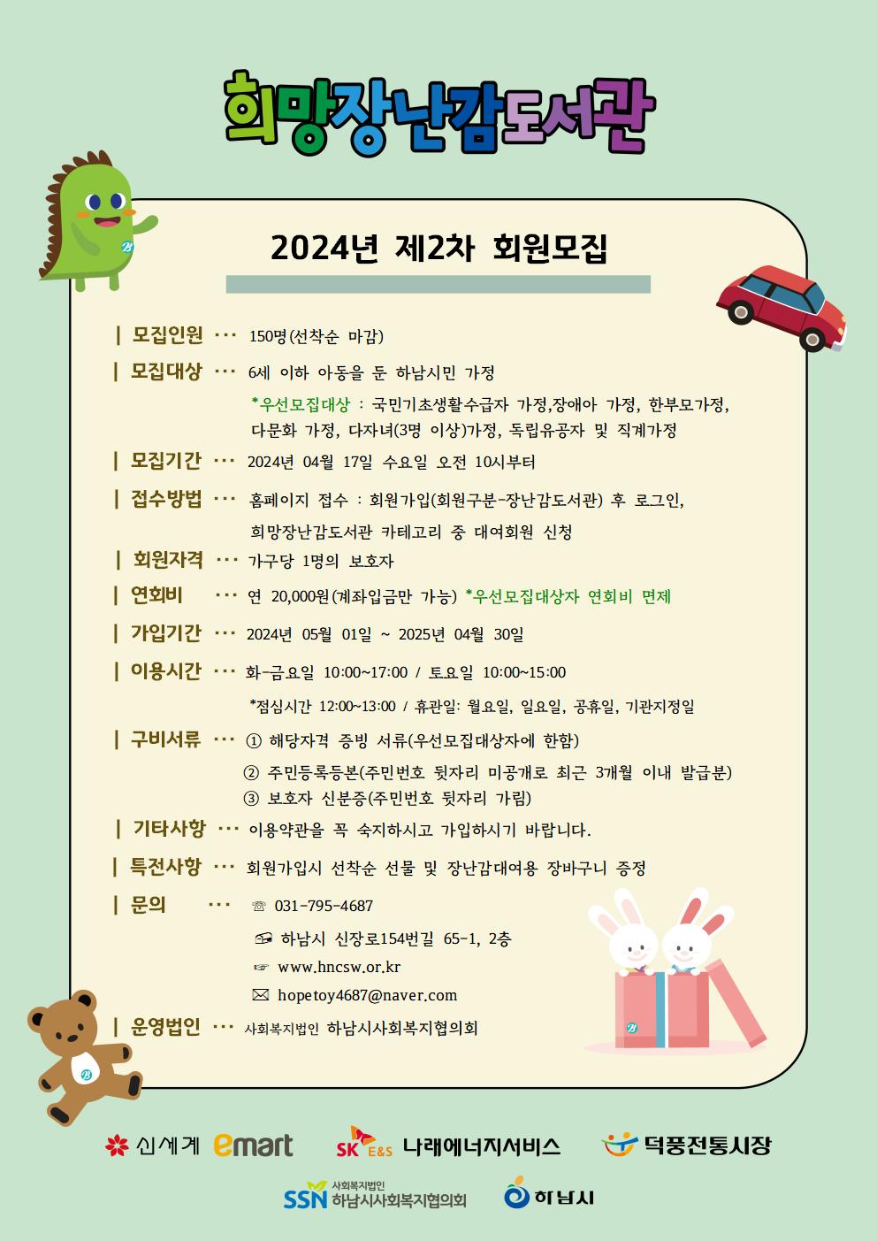 | 희망장난감도서관 2024년 제2차 회원모집 안내 | |||||